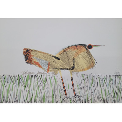 Aldemir Martins - Pássaro - 15-30. Xilogravura, 50x35 cm, 1988, A.C.I.D. a lápis. Sem moldura
