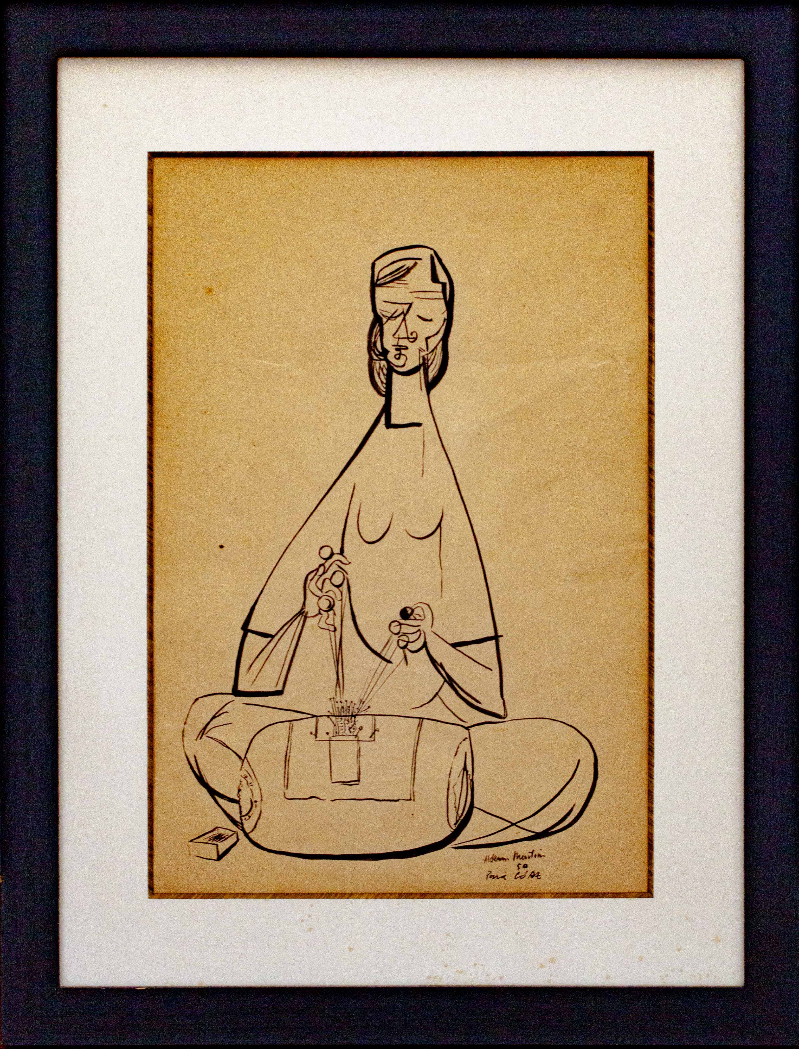 Aldemir Martins - Côcos - 35 x 35 cm - Nanquim e aguada sobre papel - Assinatura canto inferior direito e Data 1960 - Catalogado na Galeria Bonino sob o número 782