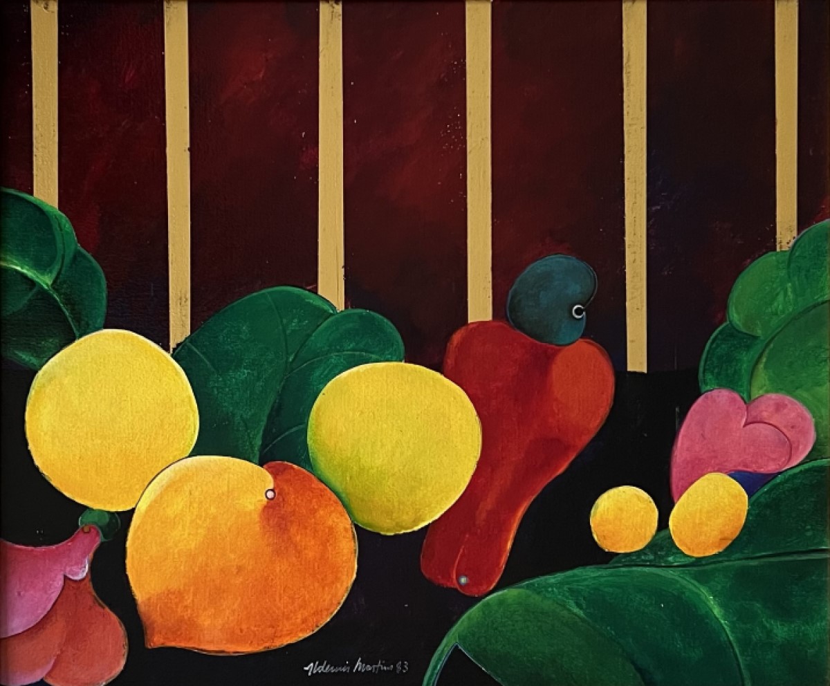 Aldemir Martins - Bananas verdes - 59 x 73 cm - Óleo sobre tela - Assinatura canto inferior direito e Data 1973 - Catalogado sob o número BR 5503 da Galeria Bonino