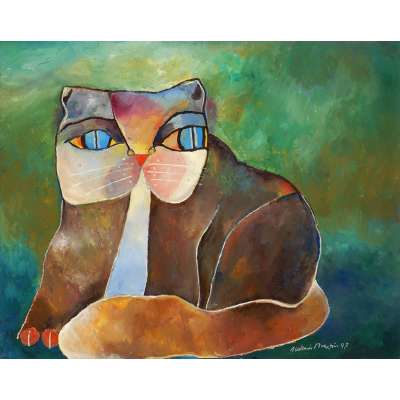 Aldemir Martins,Gato azul,2003, Acrilica Sobre tela,80x60,acie ( Com Certificado assinado pelo Aldemir Martins )