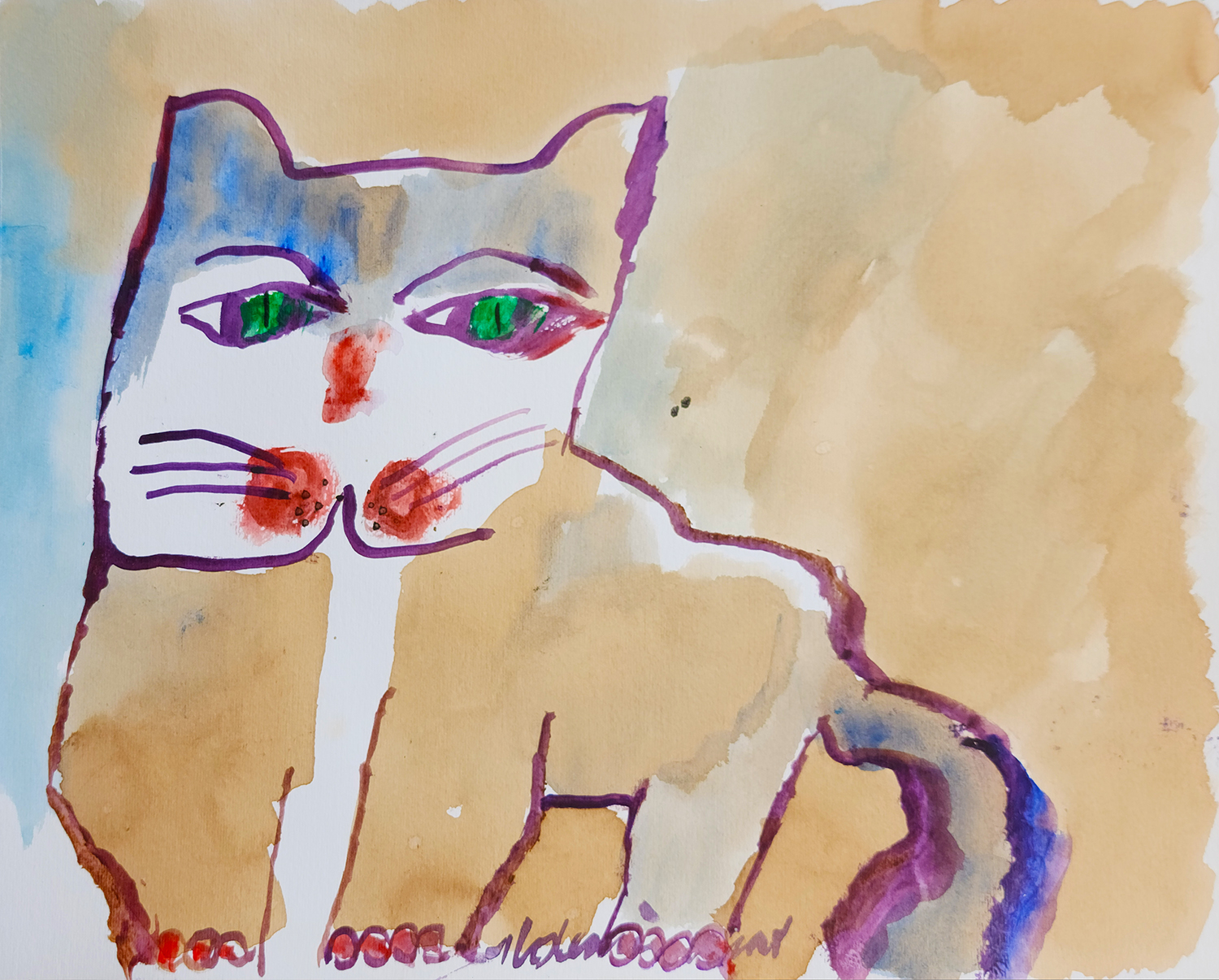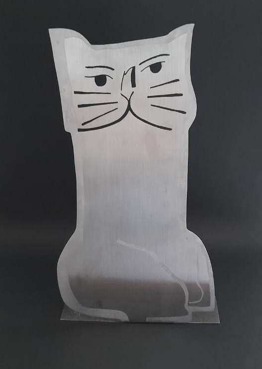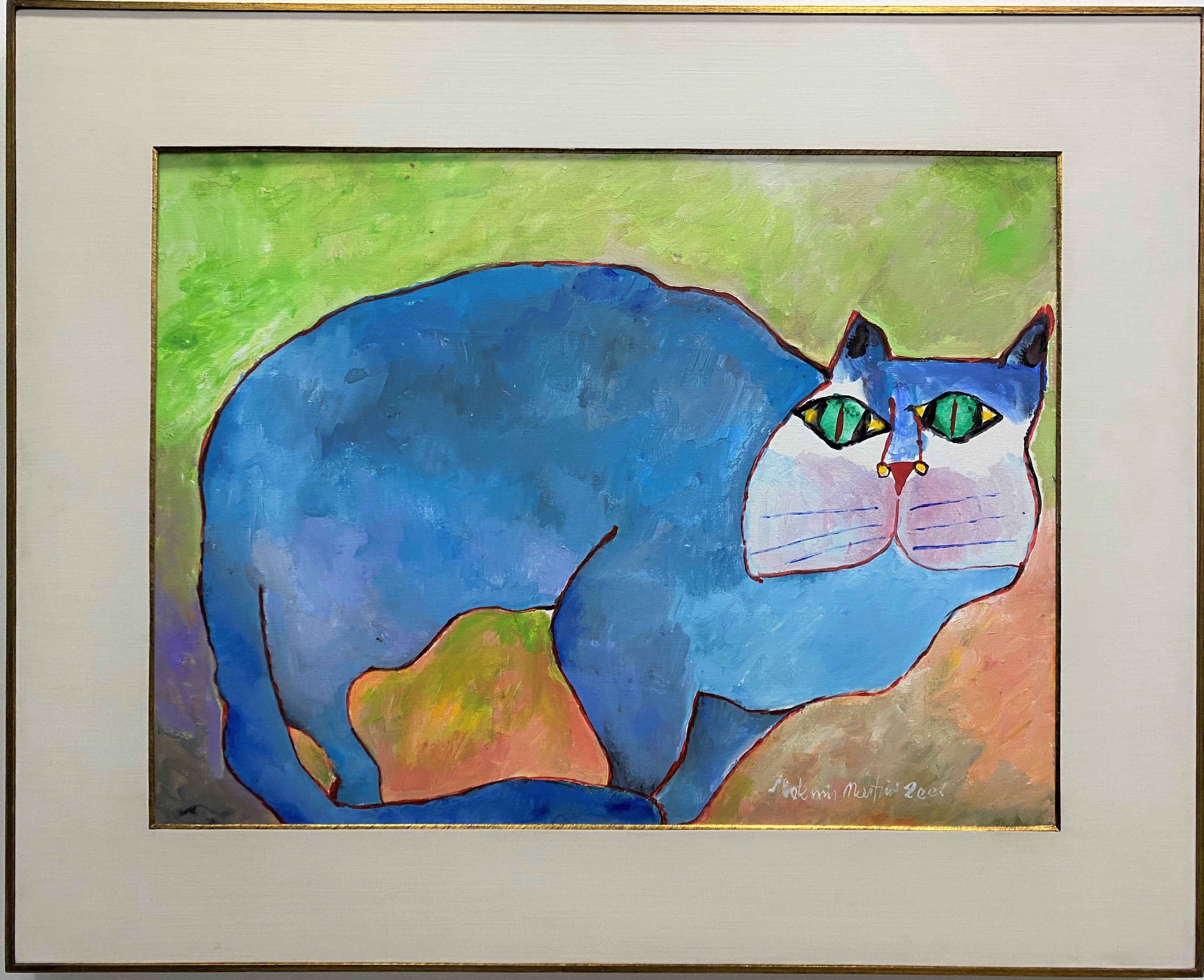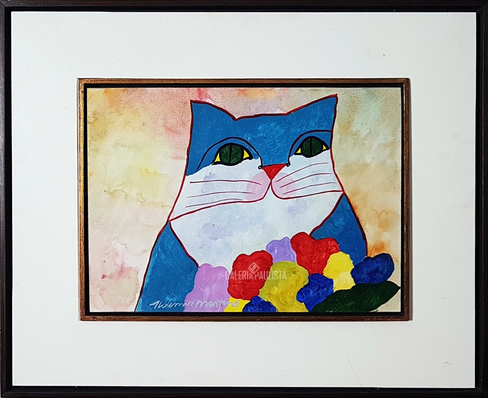 ALDEMIR MARTINS - Gato azul com vaso de flores - acrílico sobre tela - Medidas: 60 x 80 cm - Assinatura: canto inferior direito e dorso - 2003