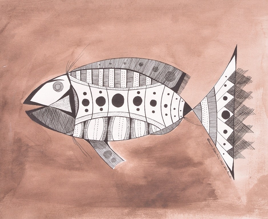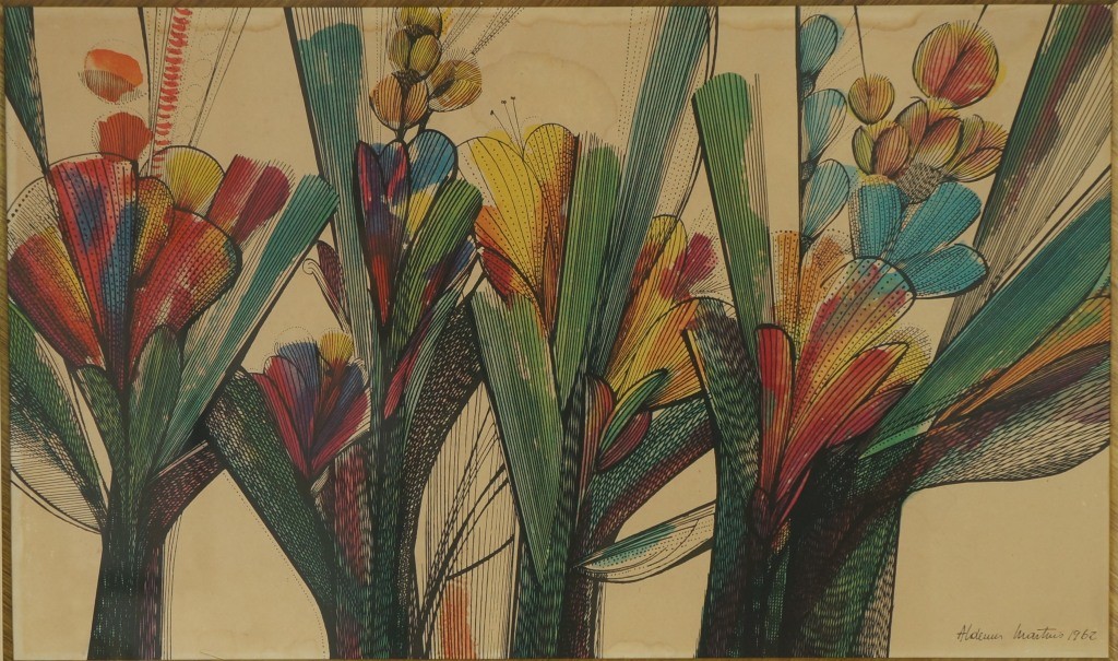 Aldemir Martins - Côcos - 35 x 35 cm - Nanquim e aguada sobre papel - Assinatura canto inferior direito e Data 1960 - Catalogado na Galeria Bonino sob o número 782