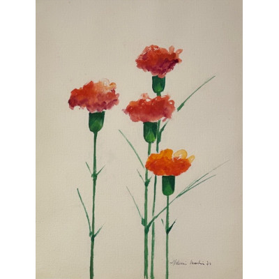 Aldemir Martins. Vaso com Flores. Acrílica sobre cartão, 31,5 x 21,5 cm. Assinado e datado embaixo no centro: Aldemir Martins 2000.
