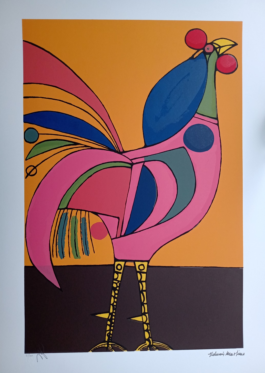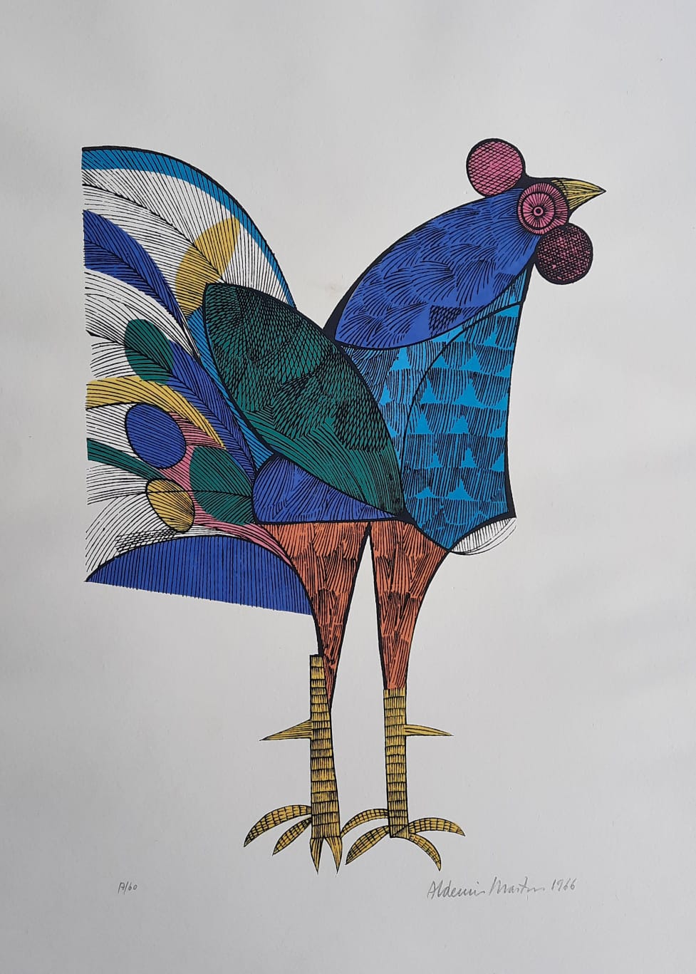 Aldemir Martins - Galo - 9-60. Serigrafia, 66x48 cm, 1966, A.C.I.D. a lápis. Com moldura