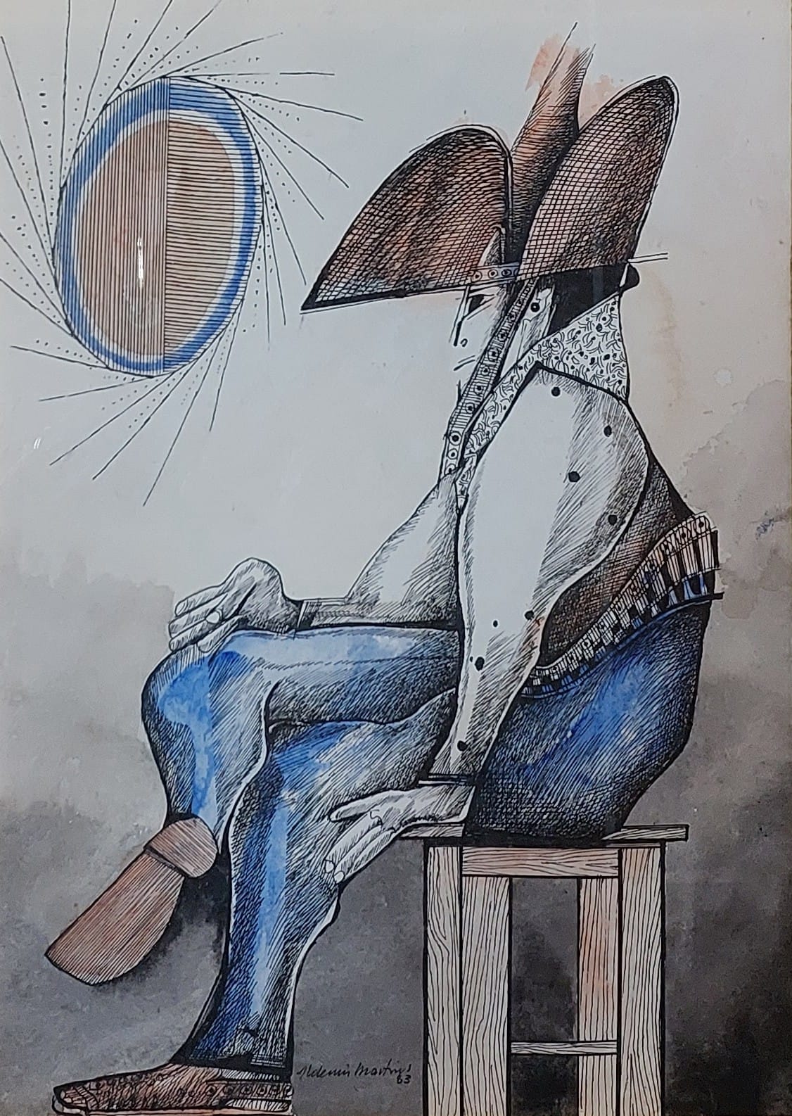Aldemir Martins - Rendeira - Técnica mista - Medidas 59 x 41 cm - Assinado e datado de 1987 - Com certificado do Studio Aldemir Martins