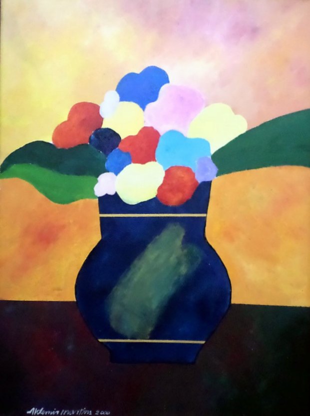 Aldemir Martins - Vaso de flores - Acrílica sobre tela s/ placa - 42 alt x 32 larg (cm) - acid - 1996
