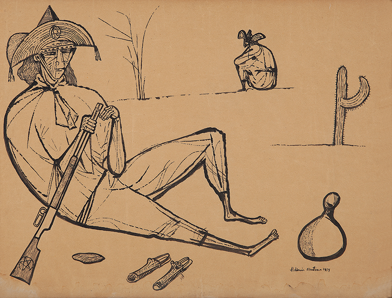ALDEMIR MARTINS - Cangaceiro com espingarda - Nanquim sobre papel - Dat. 1952 - CID - (Acompanha certificado) - 25 x 17 cm.