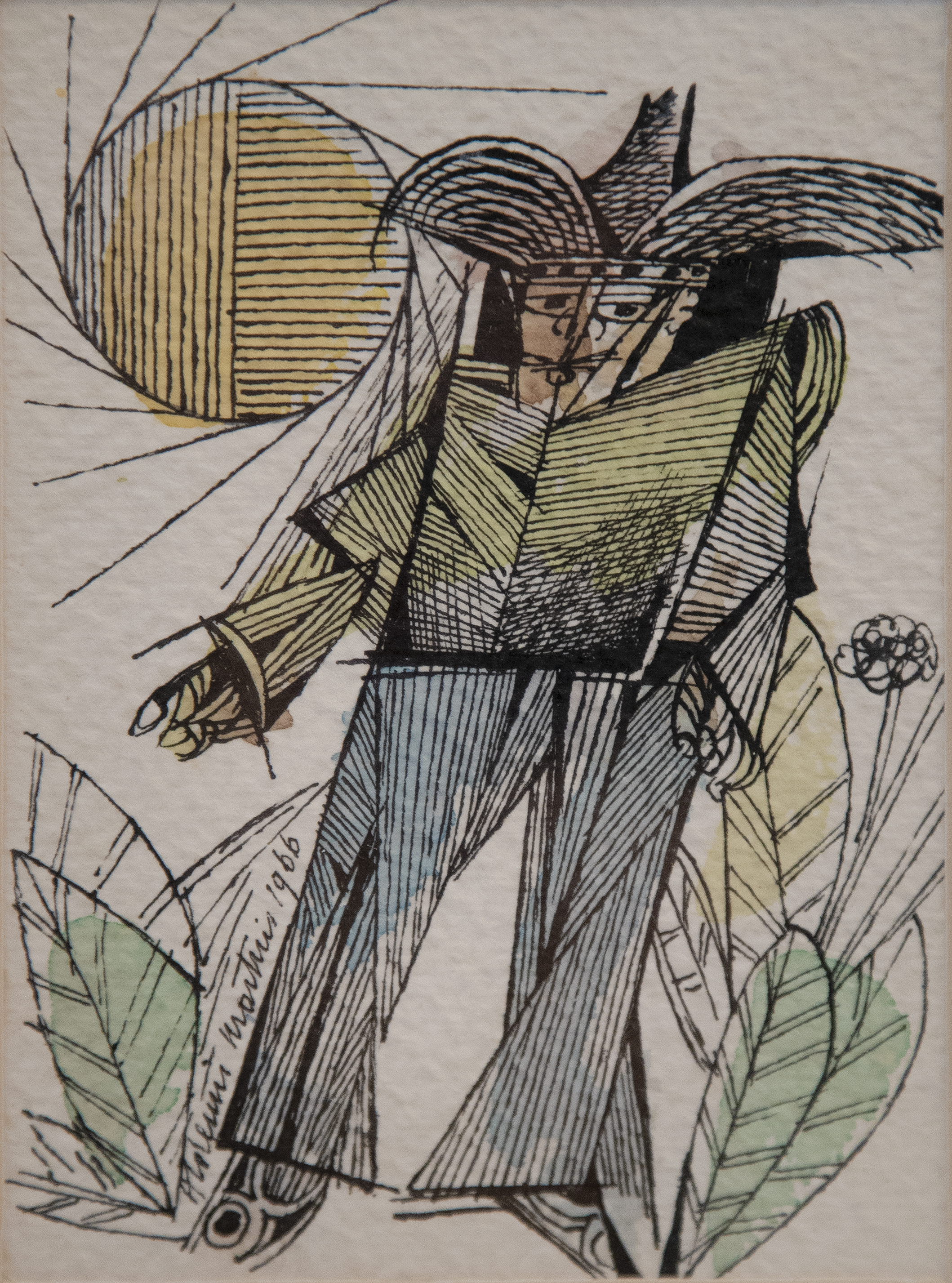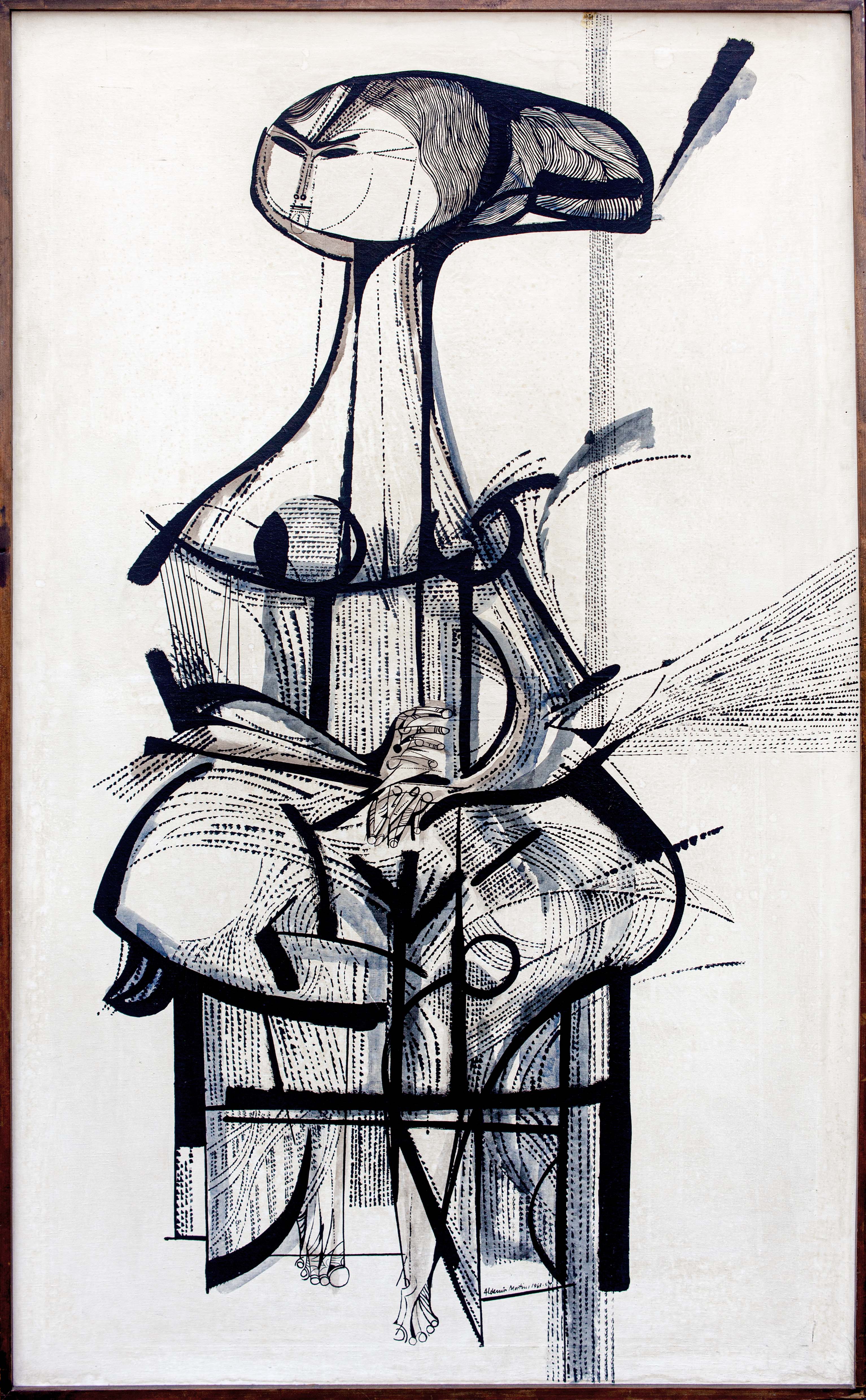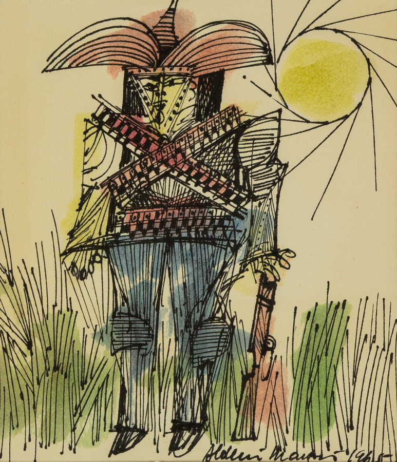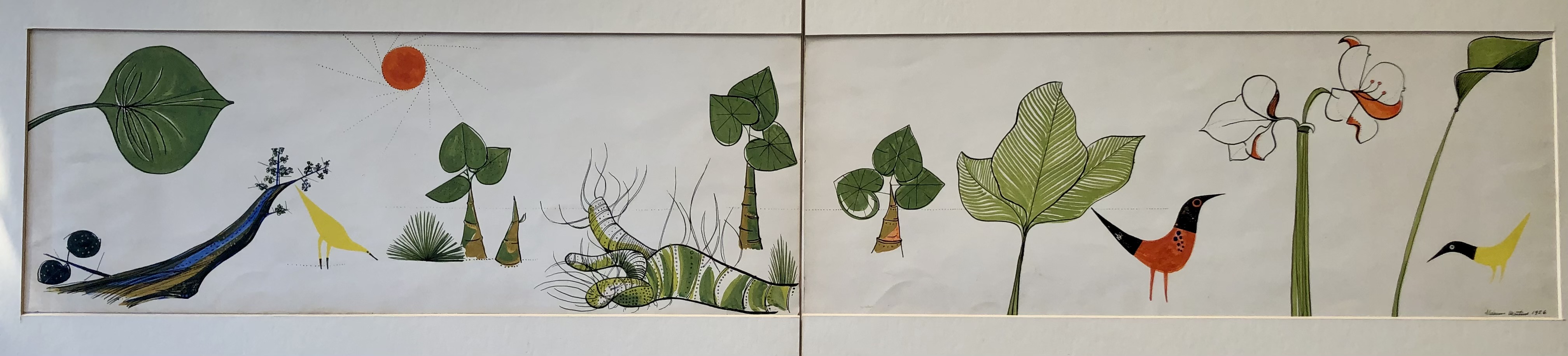 Aldemir Martins - Girassol. Nanquim e acrílica sobre papel, 69x19 cm, 1962, A.C.I.E. e V. Sem moldura