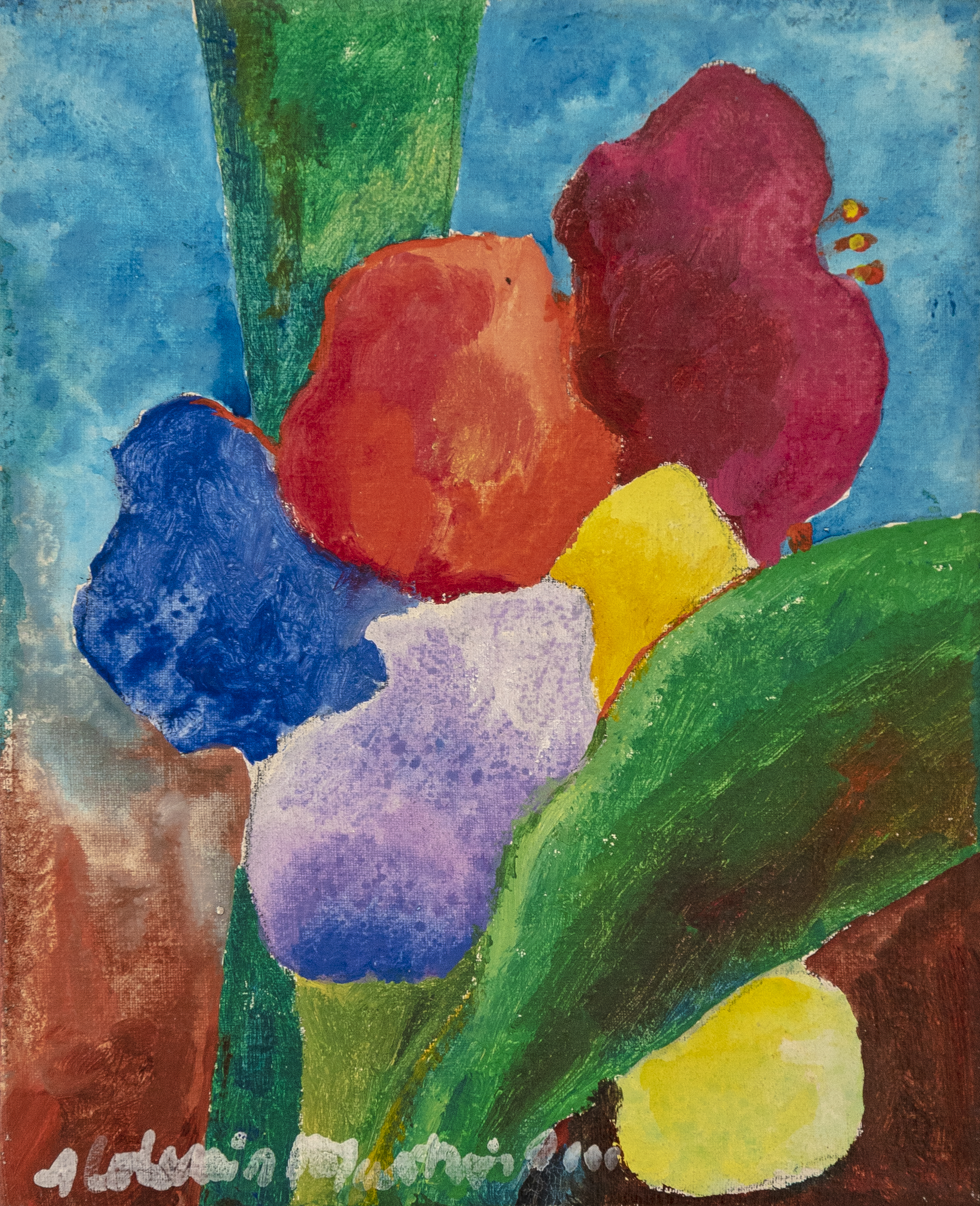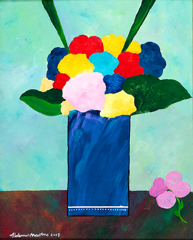 Aldemir Martins - Vaso de flores. Óleo sobre tela, 75x25 cm, sem data, sem assinatura. Com moldura e certificado do Estúdio Aldemir Martins.