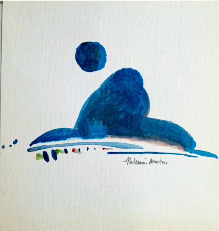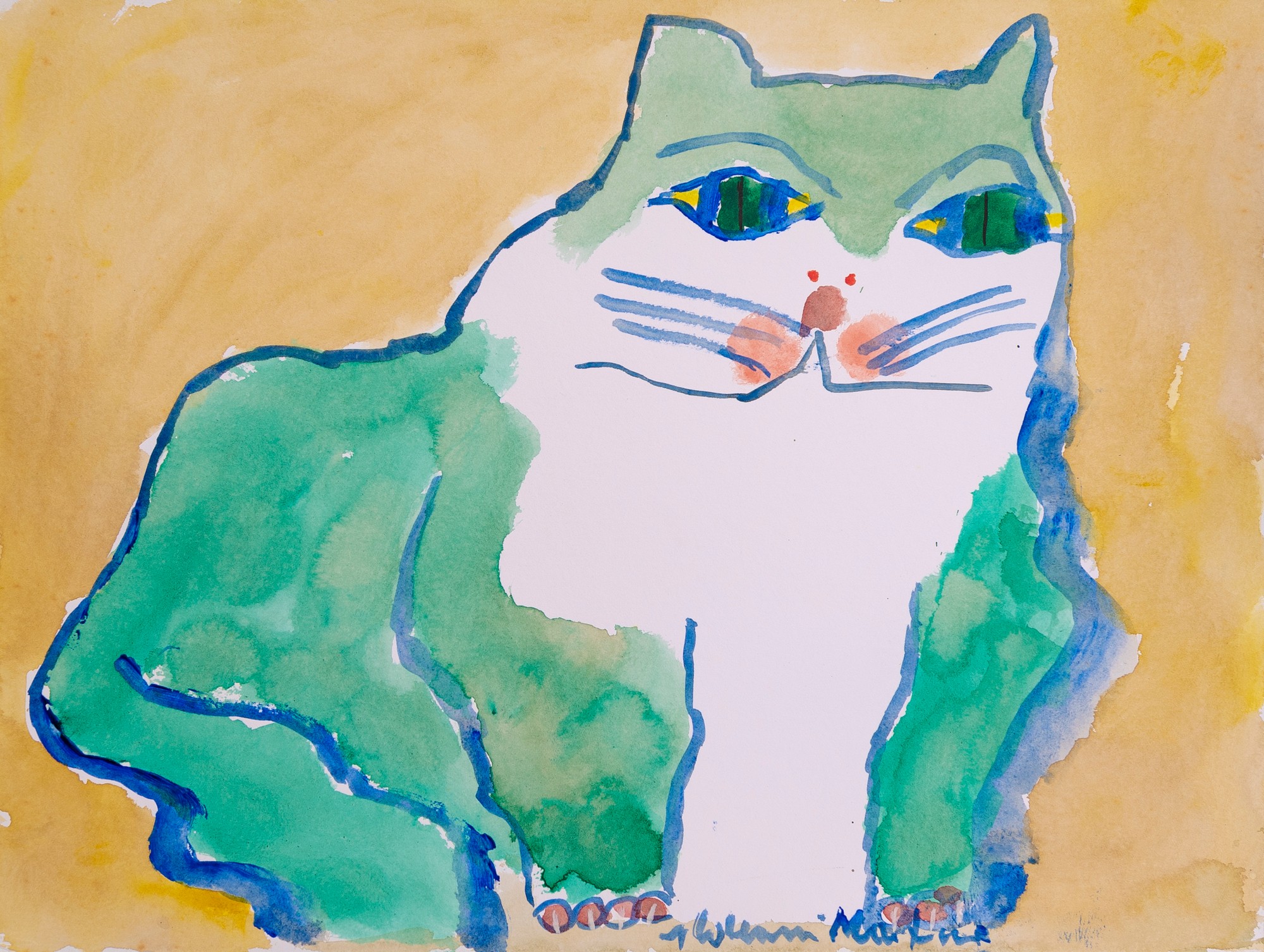 Aldemir Martins - Gatinho azul. Acrílica sobre papel, 22x14,5 cm, 1985, A.C.I.D. Sem moldura. Com certificado de autenticidade do Estúdio Aldemir Martins