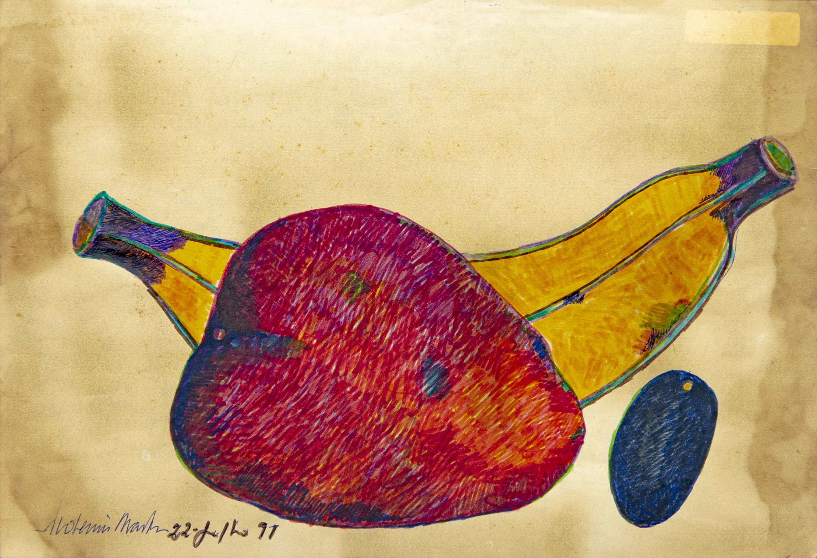 Aldemir Martins - Banana, estudo no. 2 - Álbum Água na boca. Acrílica sobre papel, 23x35 cm, 1978, A.C.I. Sem moldura