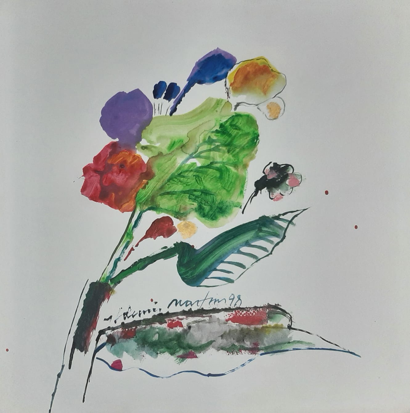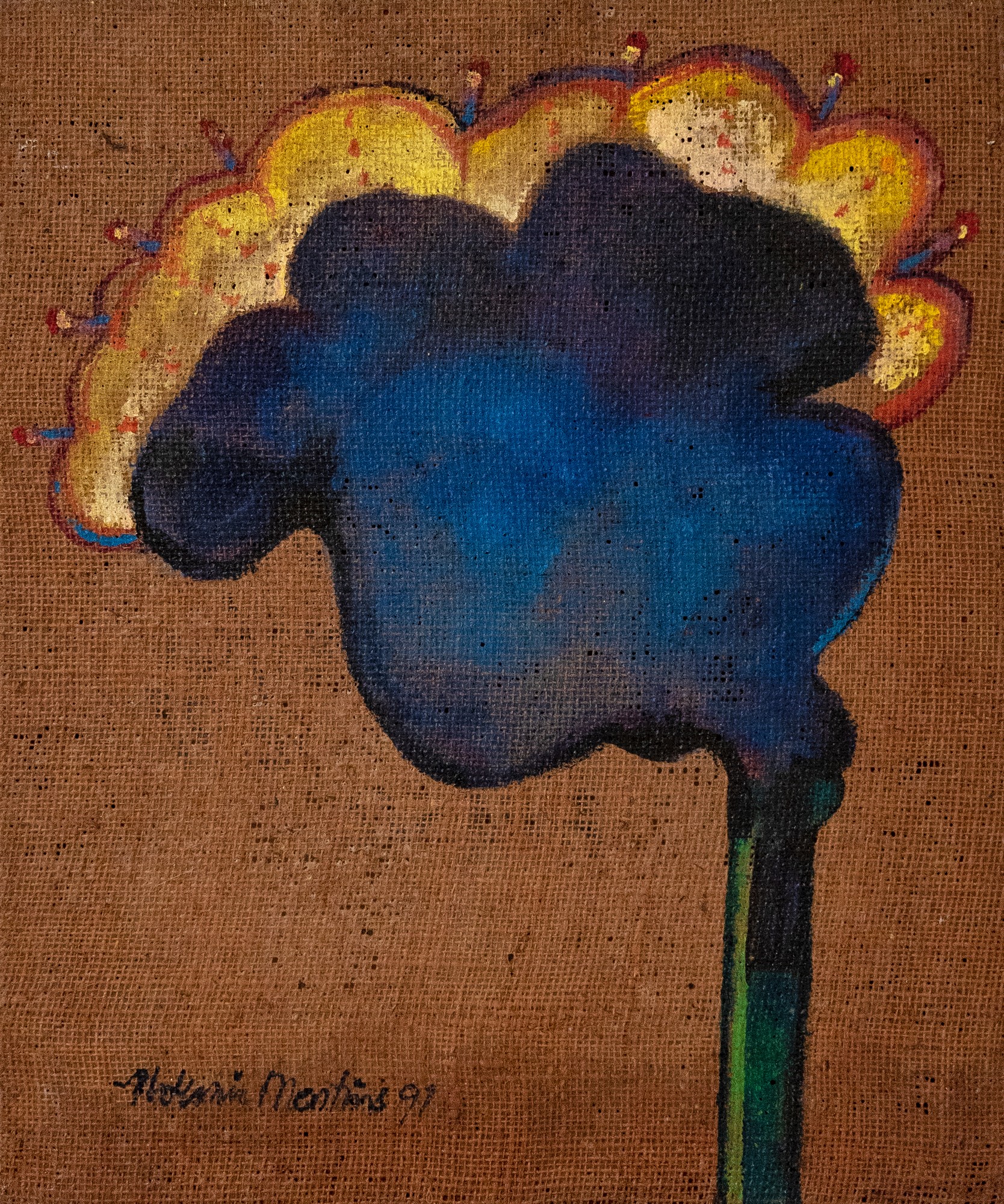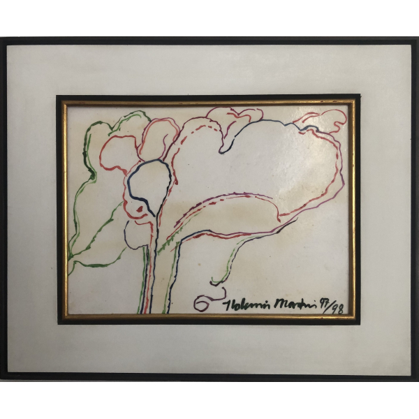 Aldemir Martins - Flor. Acrílica sobre papel, 35x35 cm, 1995, A.C.I. Com moldura e certificado do Estúdio Aldemir Martins