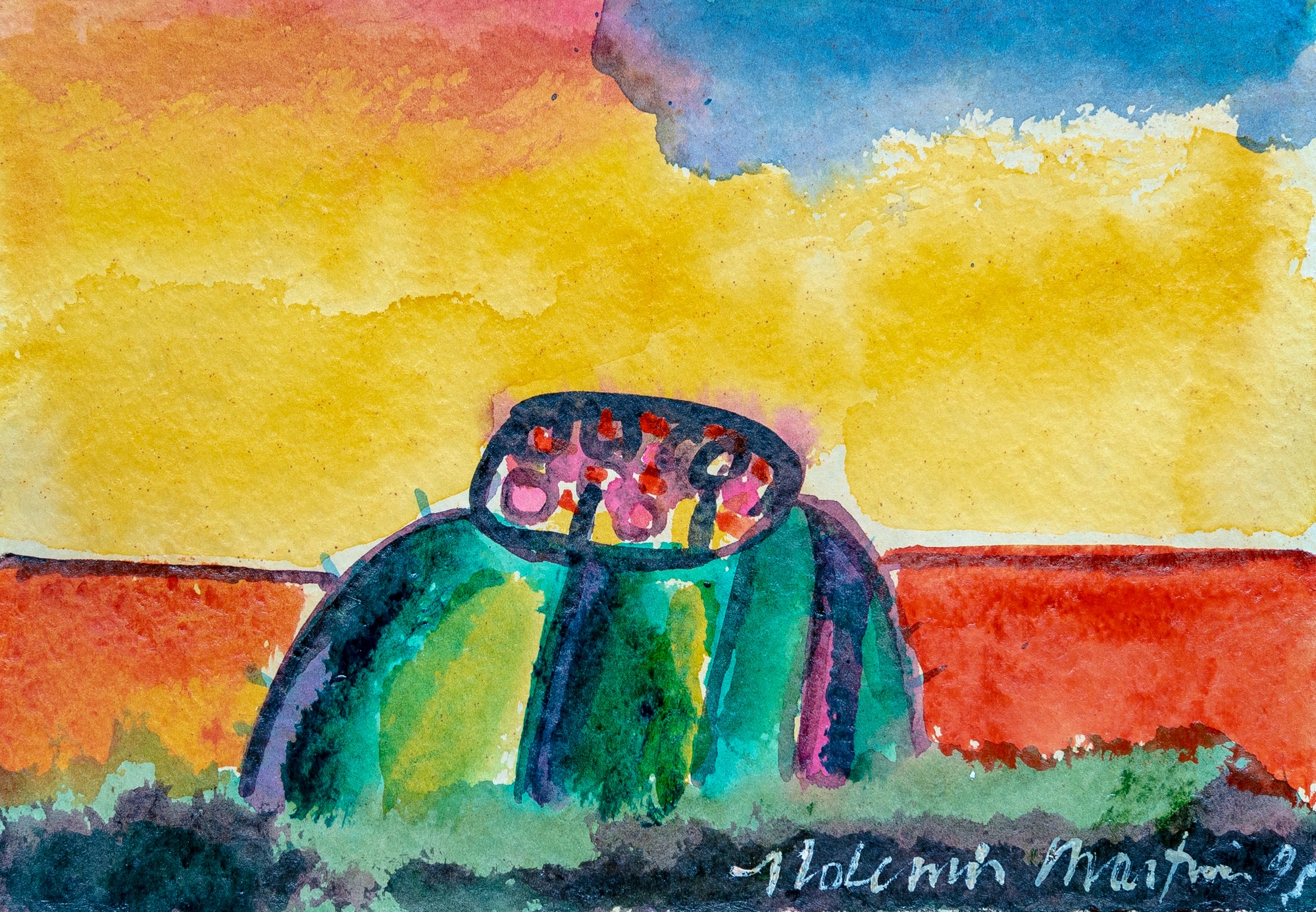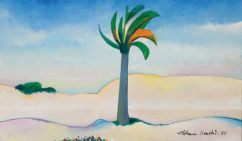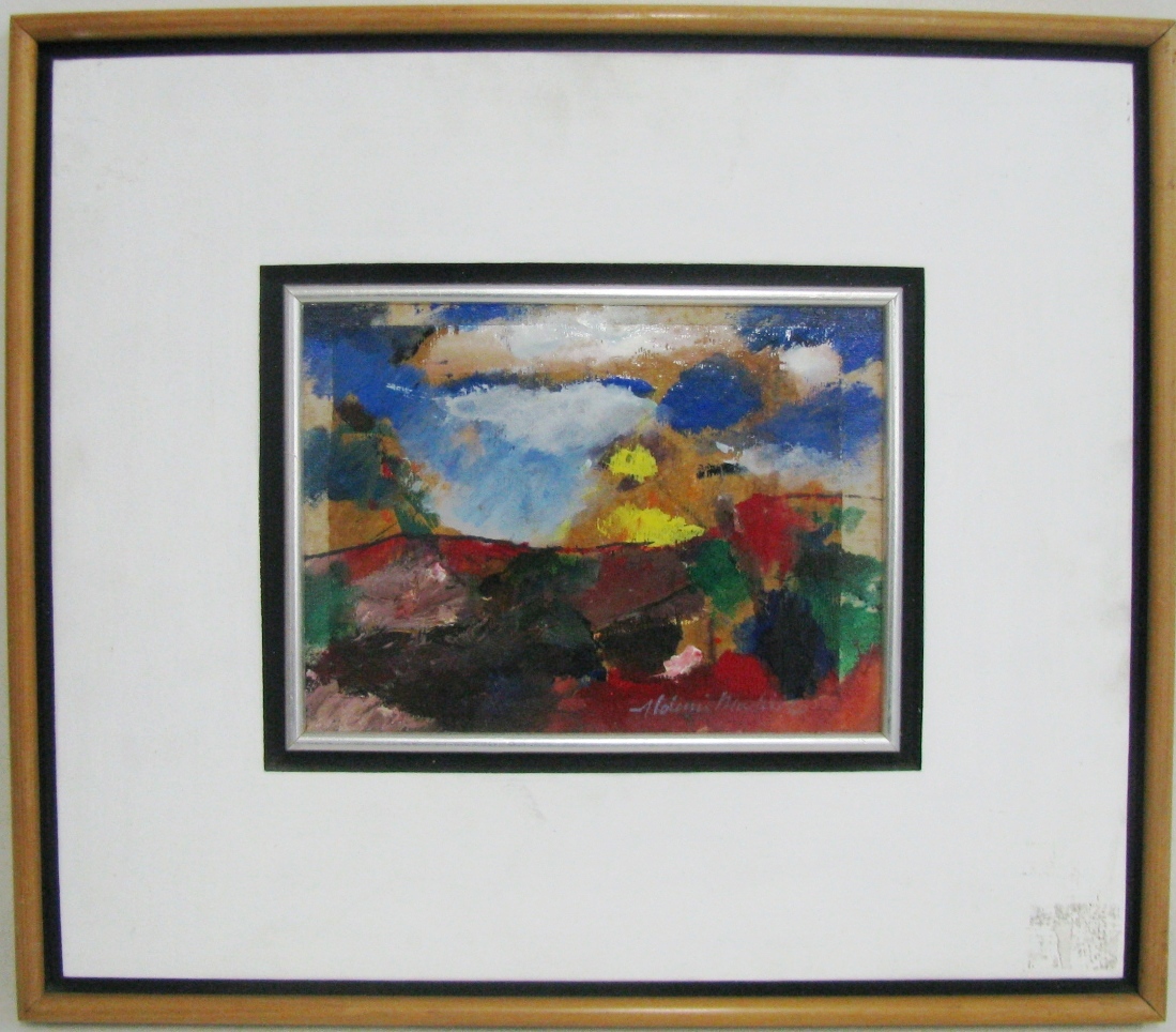 Aldemir Martins - Paisagem. Óleo sobre madeira, 29,5x27 cm, 1981, A.C.I.E. Com moldura
