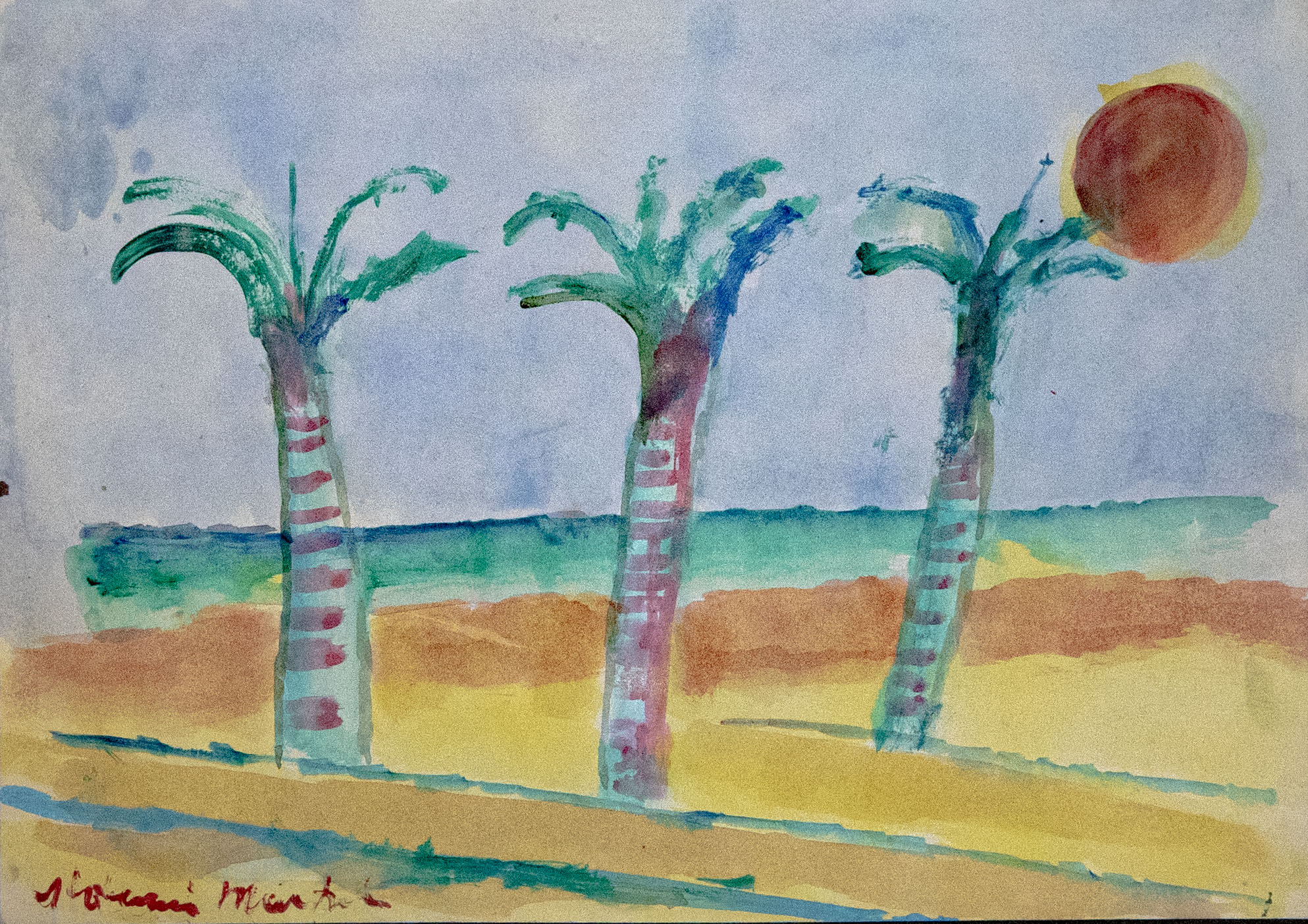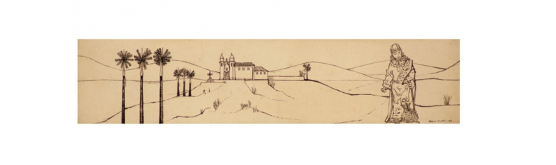Aldemir Martins - Côcos - 35 x 35 cm - Nanquim e aguada sobre papel - Assinatura canto inferior direito e Data 1960 - Catalogado na Galeria Bonino sob o número 782