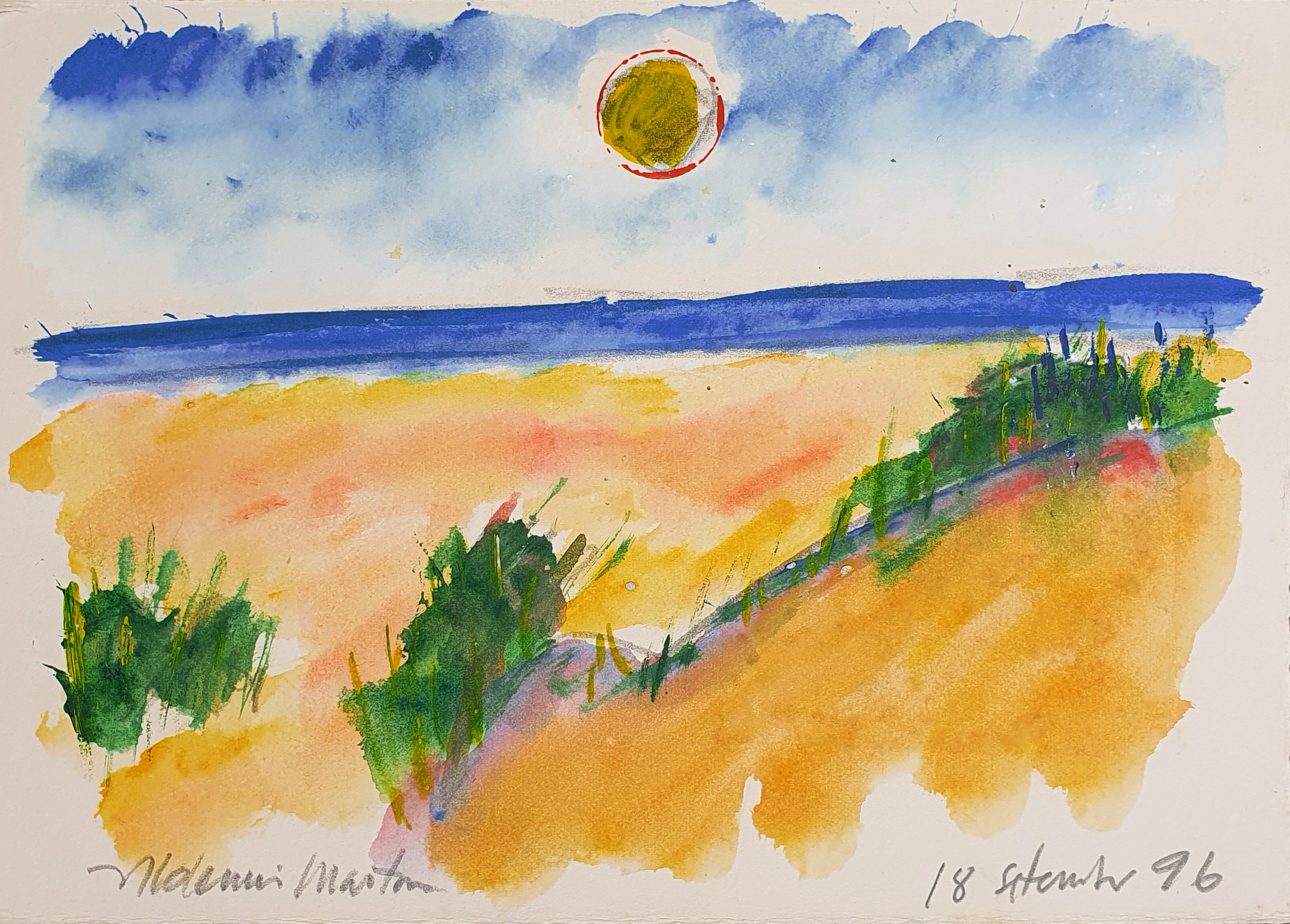 Aldemir Martins - Flor e Sol - Aquarela - 22x18 - 1977 - Assinada