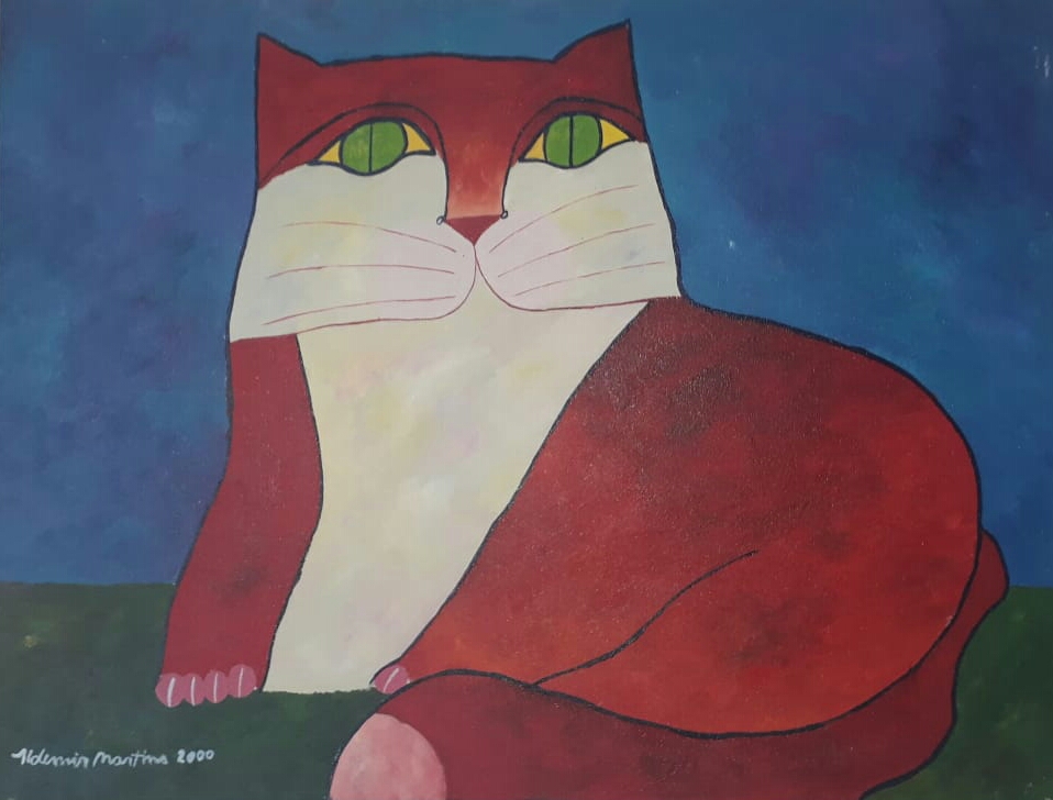 Aldemir Martins - Gato Azul - ast - 60x80 - Acompanha certificado do instituto Aldemir Martins - Assinada