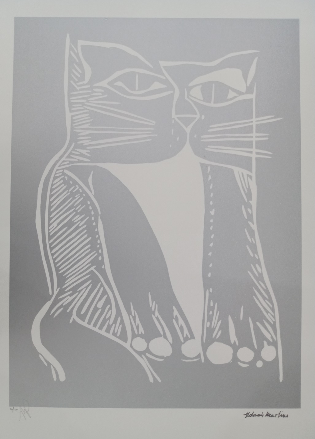 Aldemir Martins - Gato branco - Serigrafia 82/120 - 80x35 - Acid - Edição Postutuma
