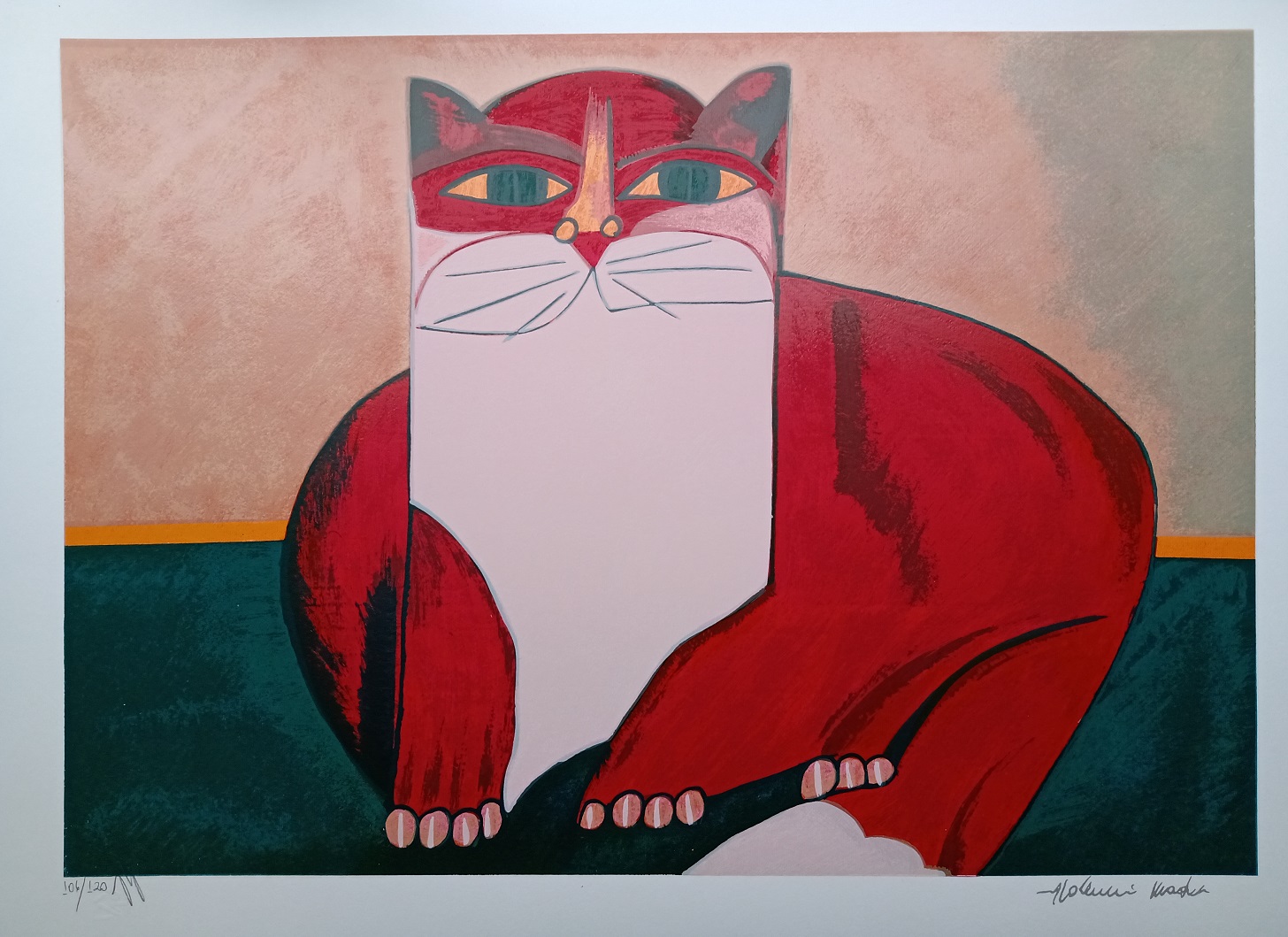 Aldemir Martins - Gato Fundo laranja - Serigrafia 69/120 - 80x35 - Acid - Edição Postutuma