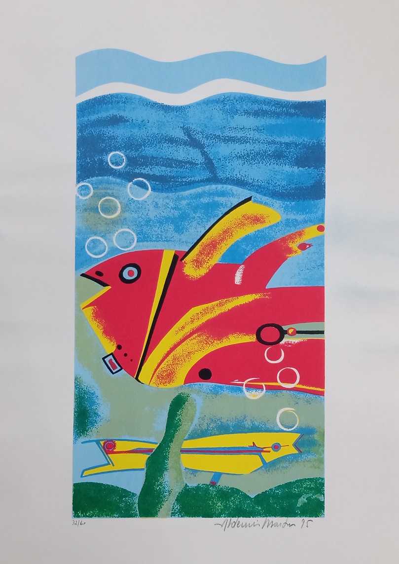 Aldemir Martins - Peixe. Acrílica sobre cartão, 30x40 cm, 1997-98, A.C.I.D. Sem moldura, com certificado assinado pelo próprio Aldemir.