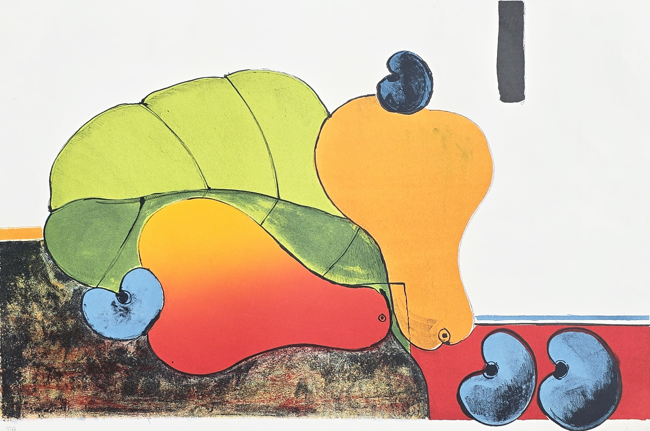 ALDEMIR MARTINS (1922 — 2006) ASSINADO A PRÓPRIO PUNHO E DATADO 1981. SERIGRAFIA LIMITADA: 89/100 - PAPEL COM MARCA D'ÁGUA. MEDIDAS: 50 X 36 CM