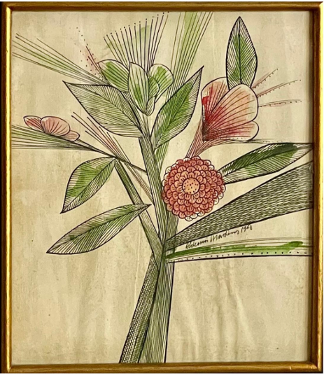 Aldemir Martins - Flor - Nanquim e Aquarela sobre cartão - 08x11 - Acid - Com Documento Autenticidade