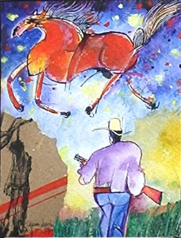 Aldemir Martins - Cangaceiro - 1970/1971 - Acrílica sobre tela - Assinado canto inferior direito - 22 x 16 cm.