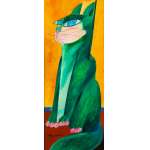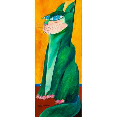 Aldemir Martins - Gato verde - 40 x 40 cm - Acrílica sobre tela - Assinatura canto inferior esquerdo e Data 2002 - Acompanha certificado de autenticidade emitido pelo Studio Aldemir Martins