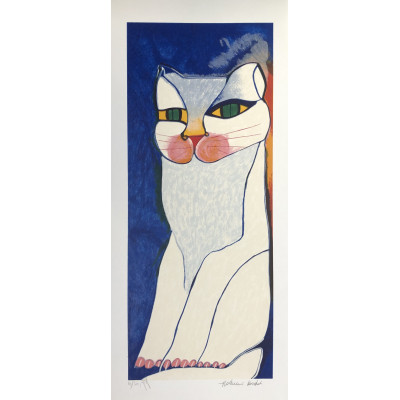 Aldemir Martins,Gato azul,2003, Acrilica Sobre tela,80x60,acie ( Com Certificado assinado pelo Aldemir Martins )