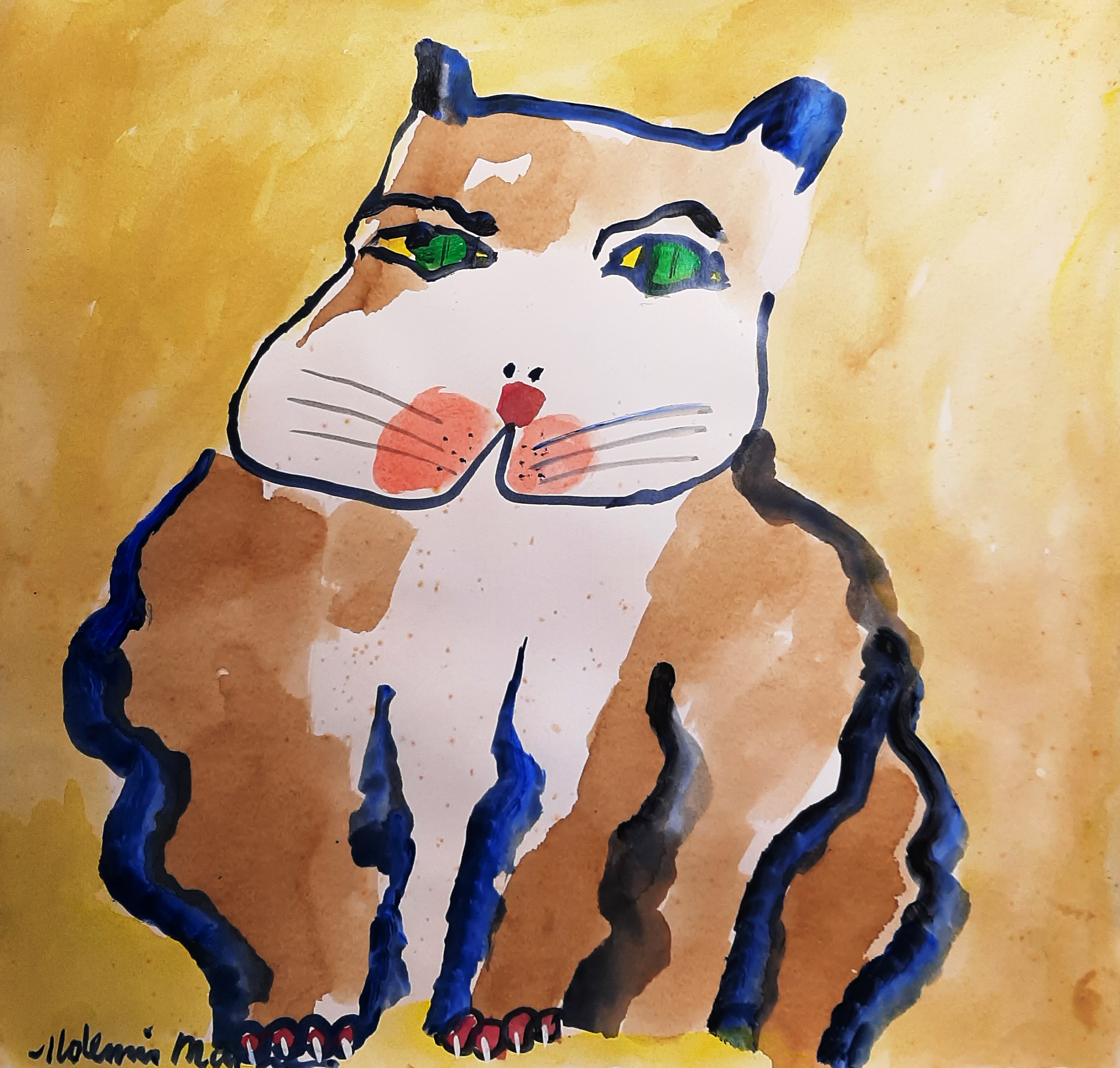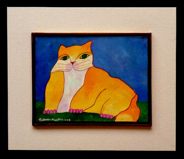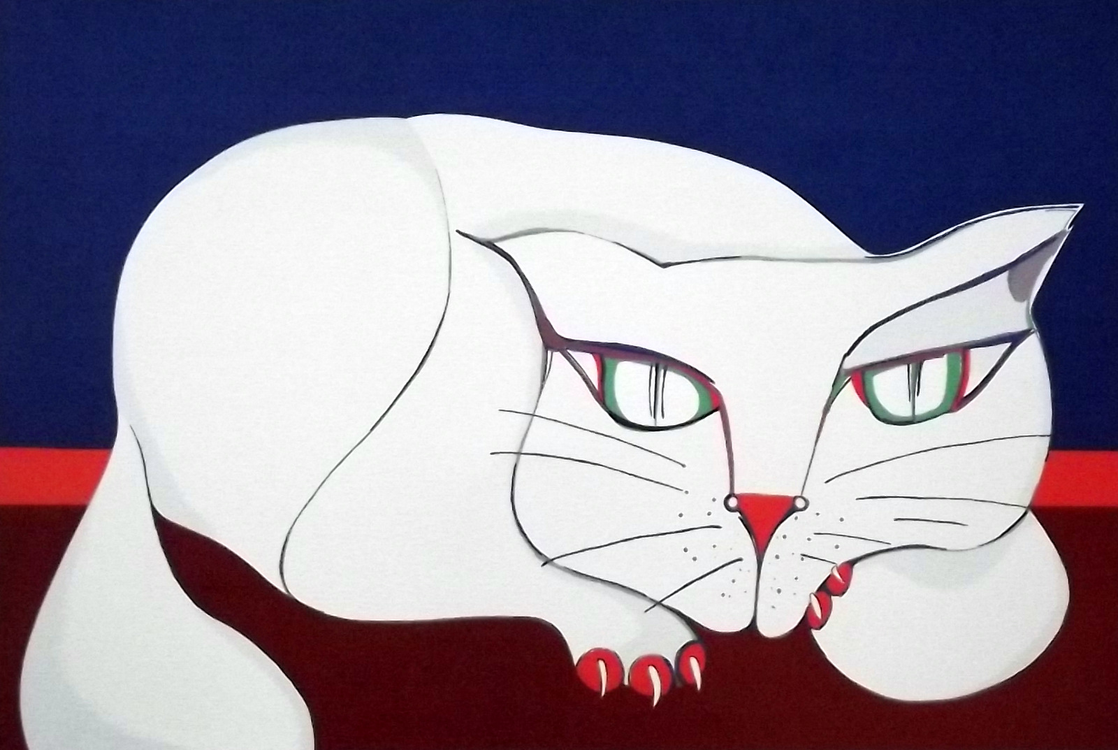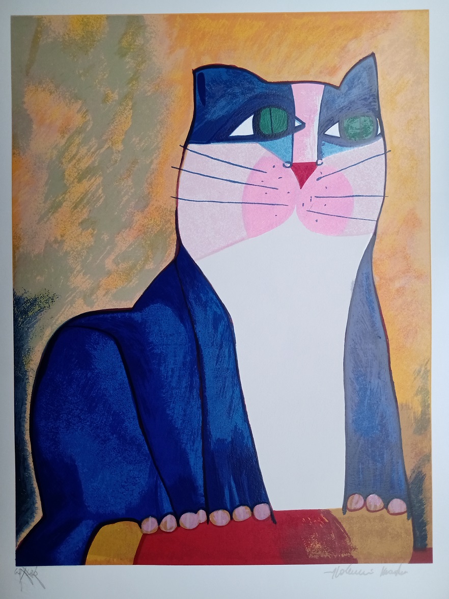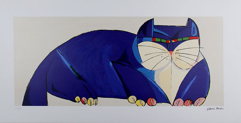 ALDEMIR MARTINS - Gato azul com vaso de flores - acrílico sobre tela - Medidas: 60 x 80 cm - Assinatura: canto inferior direito e dorso - 2003