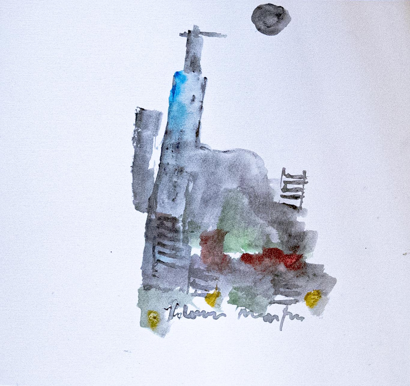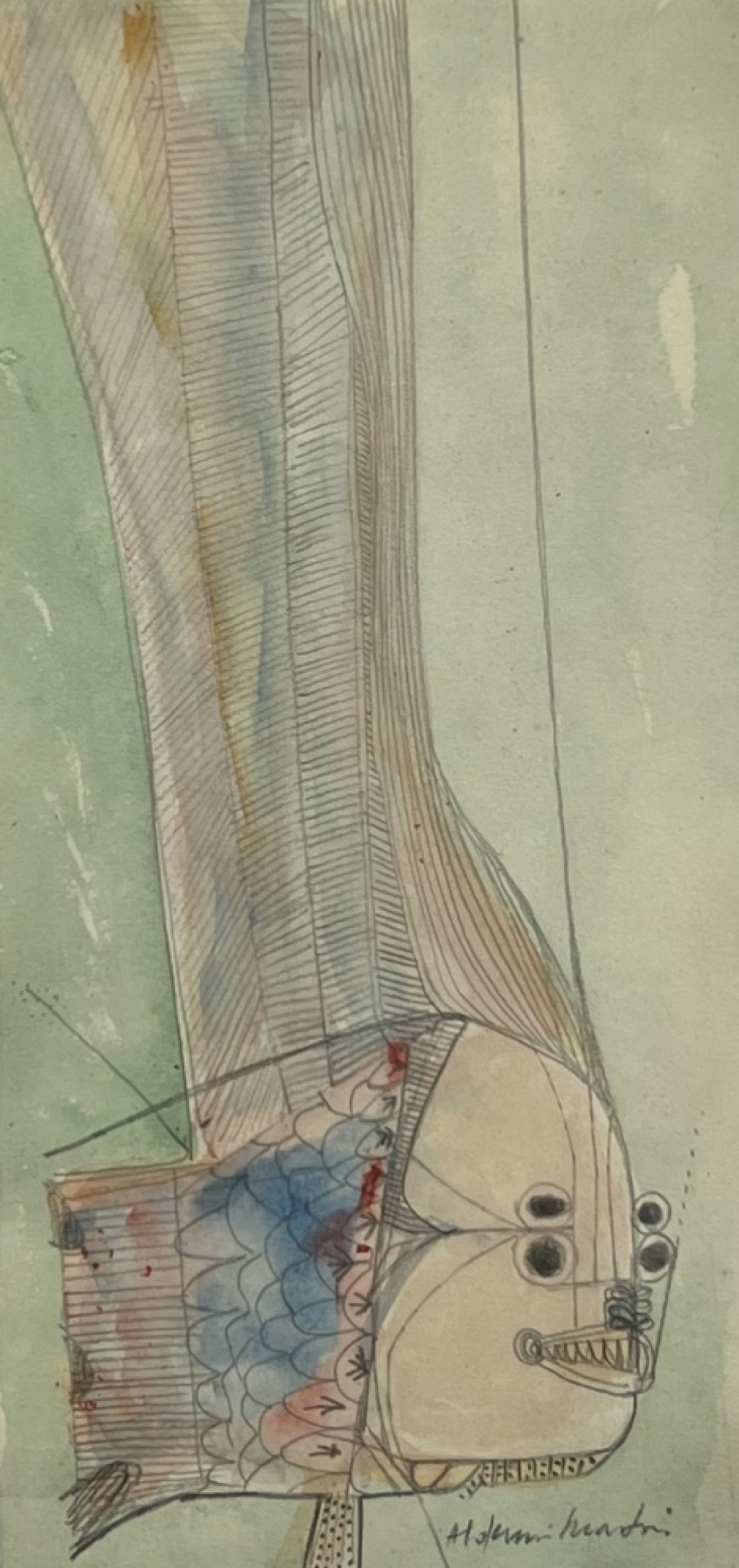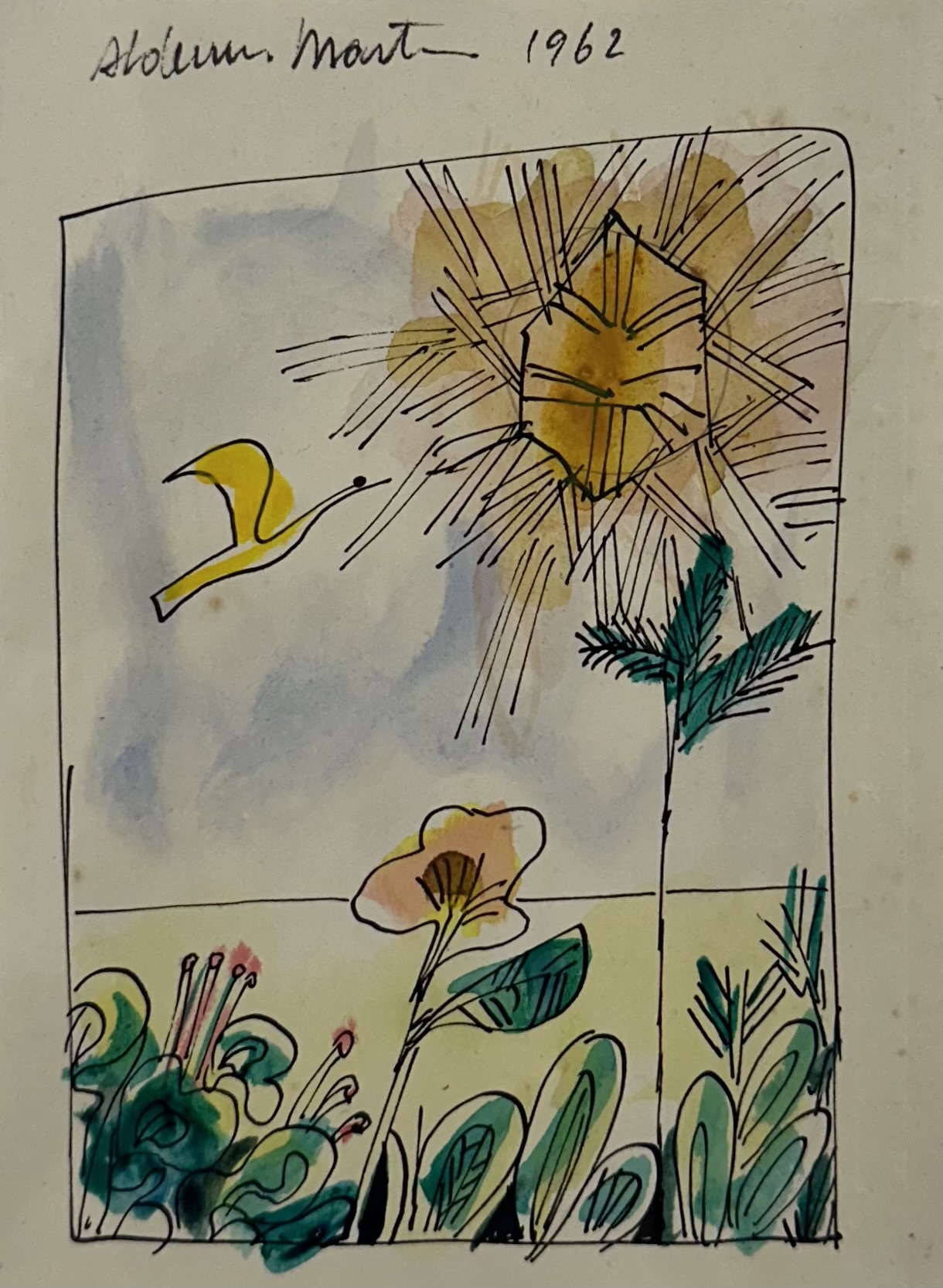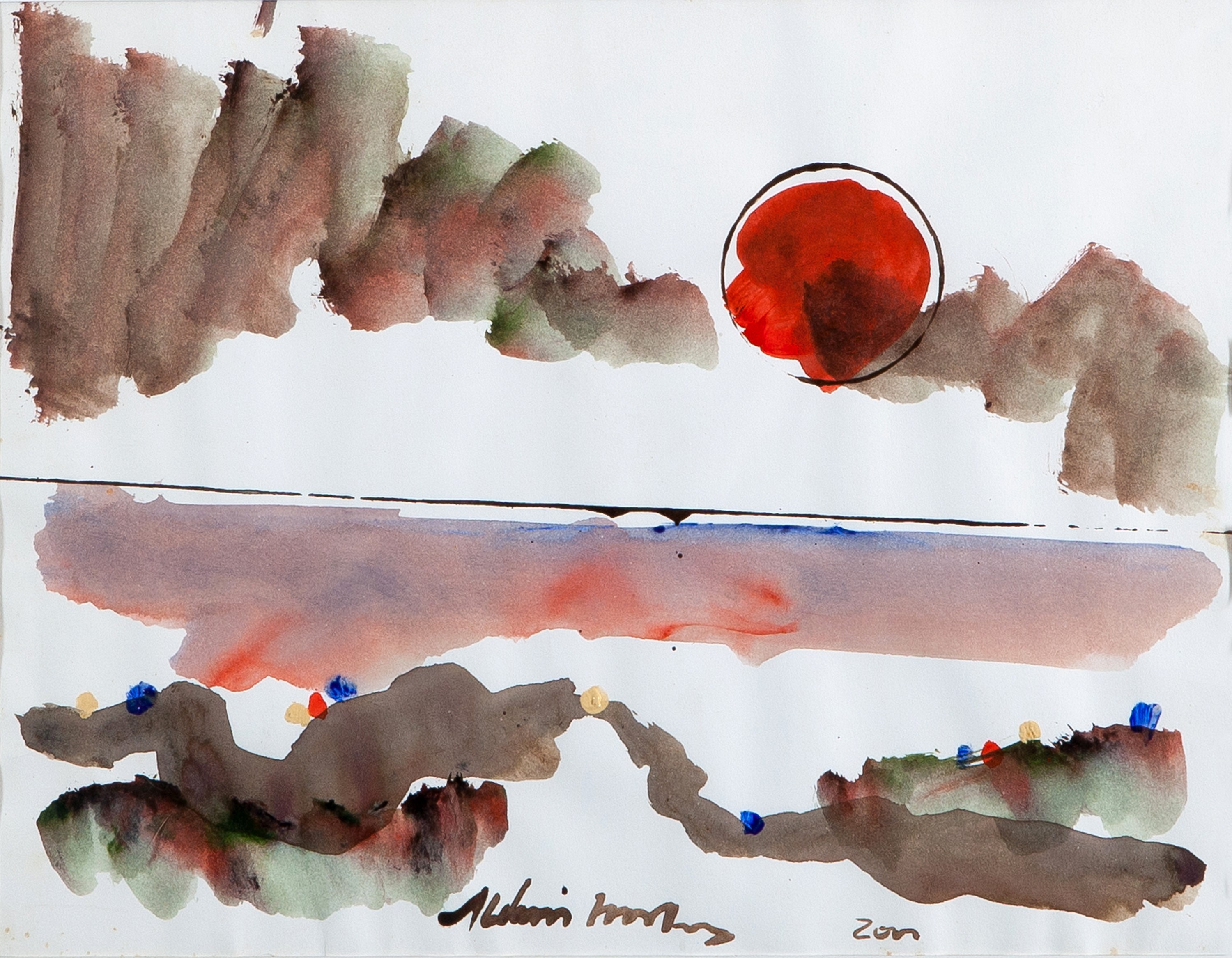 Aldemir Martins - Paisagem - Desenho a Nanquim e Aquarela - 14x11 - Ass.sup.dir - 1962 - Com certificado do Estudio Aldemir Martins