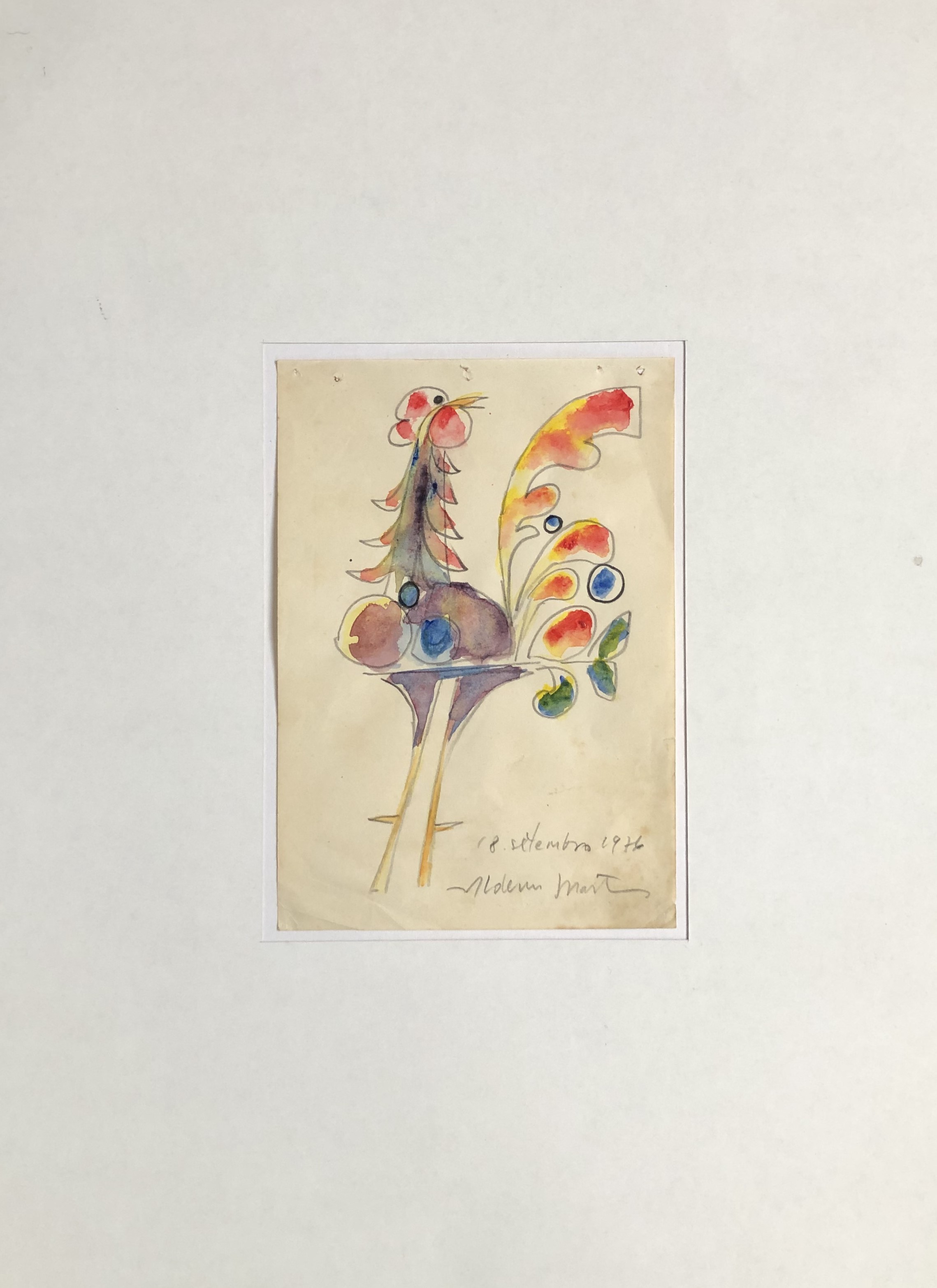 Aldemir Martins - Galo - Desenho a Nanquim e Aquarela - 1976 - 16x11 - Ass.inf.dir - Com certificado do Estudio Aldemir Martins