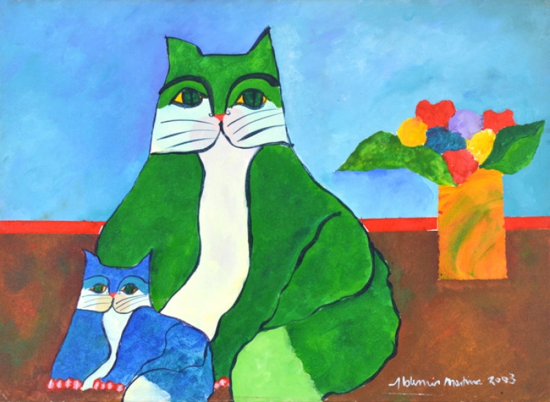 Aldemir Martins, Gato azul, 2000, Acrílico sobre tela, 60x80, Acie, Belas Artes