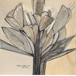 Aldemir Martins. Vaso com Flores. Acrílica sobre cartão, 31,5 x 21,5 cm. Assinado e datado embaixo no centro: Aldemir Martins 2000.