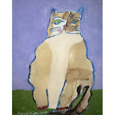 Aldemir Martins,Gato azul,2003, Acrilica Sobre tela,80x60,acie ( Com Certificado assinado pelo Aldemir Martins )