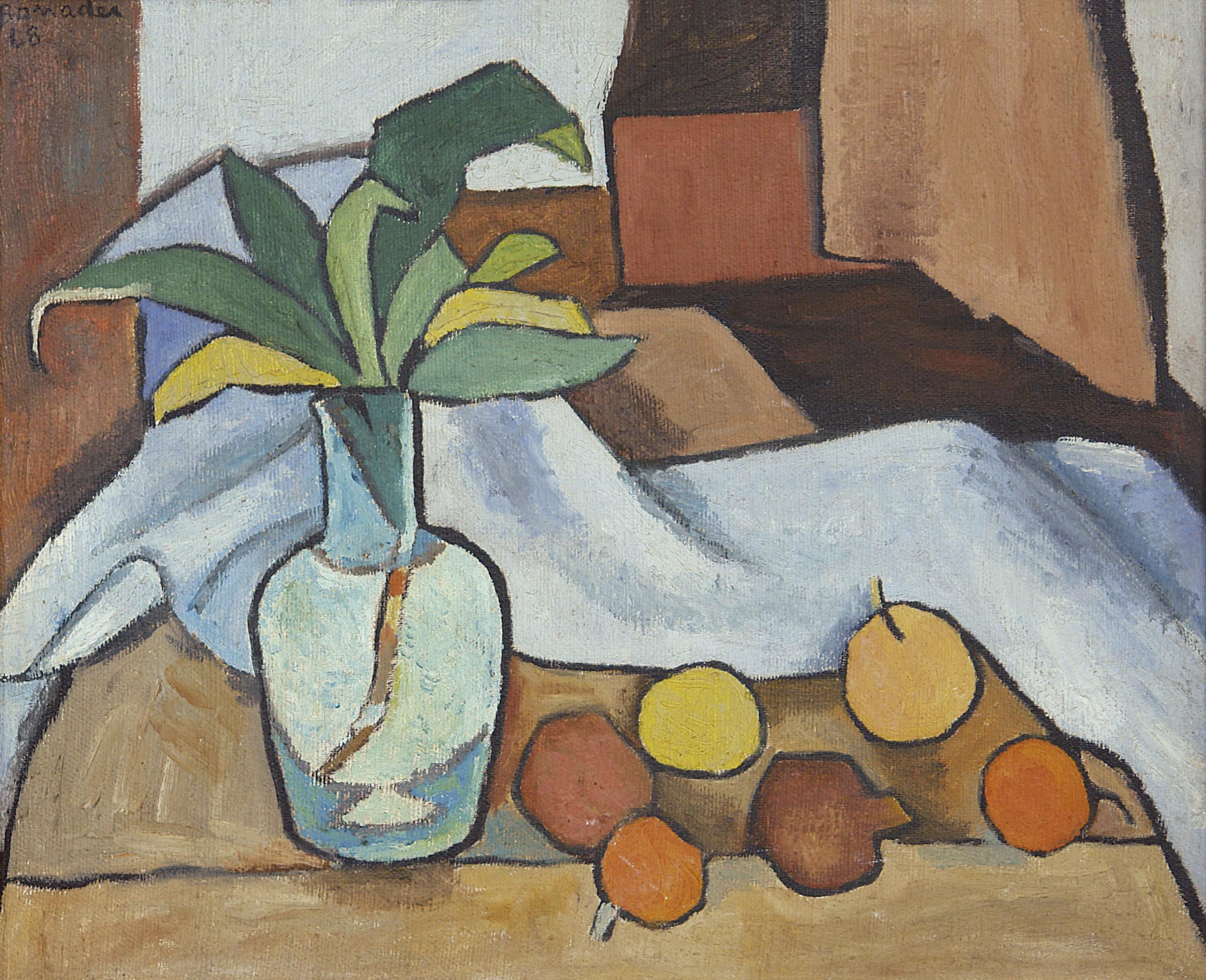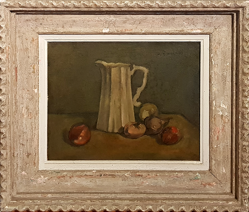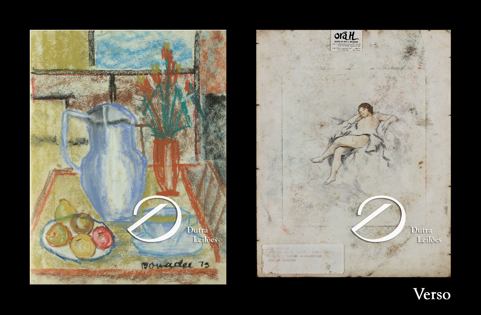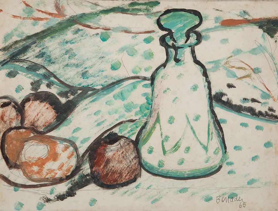 Aldo Bonadei - Natureza morta com jarro e frutas - 1972 - Óleo sobre tela - Assinado canto inferior esquerdo - 41 x 33 cm.