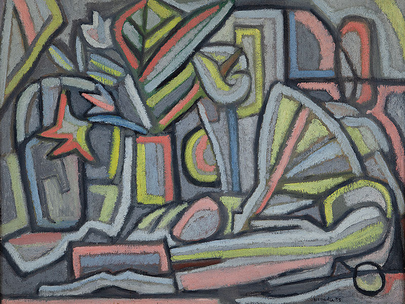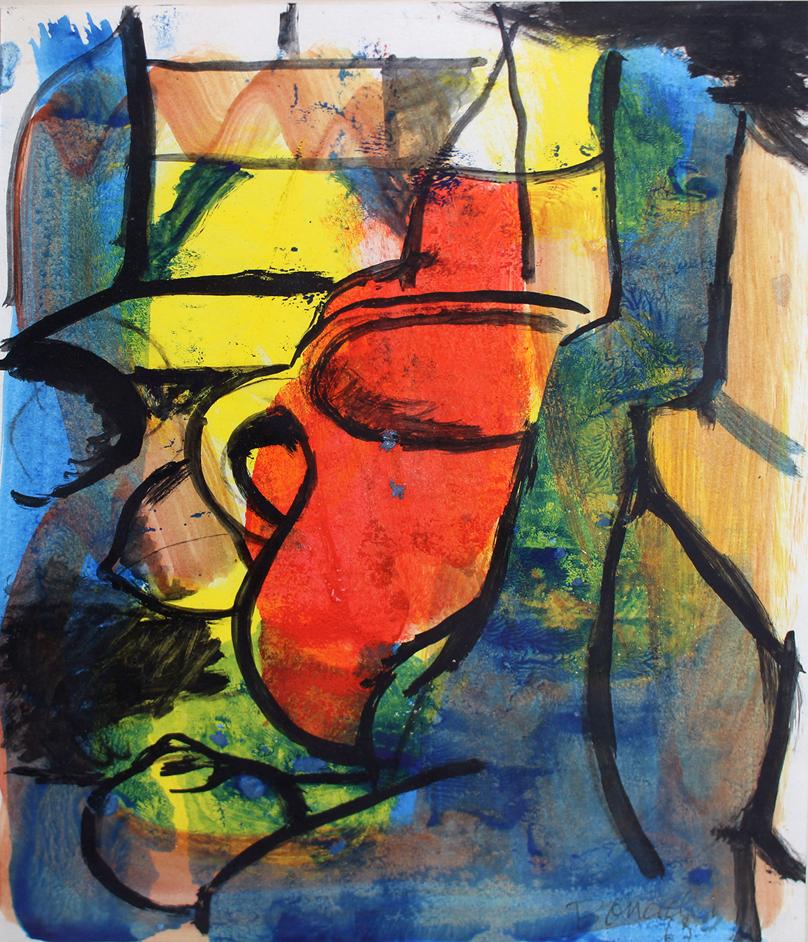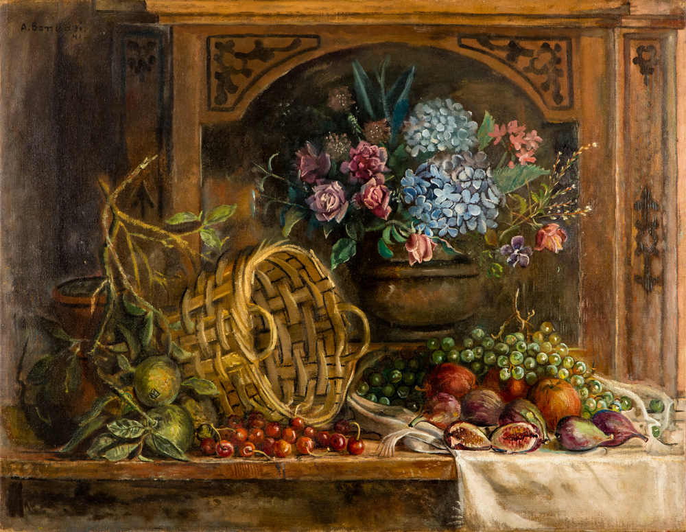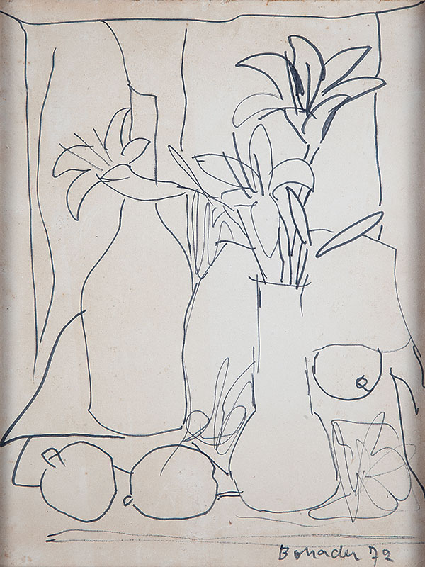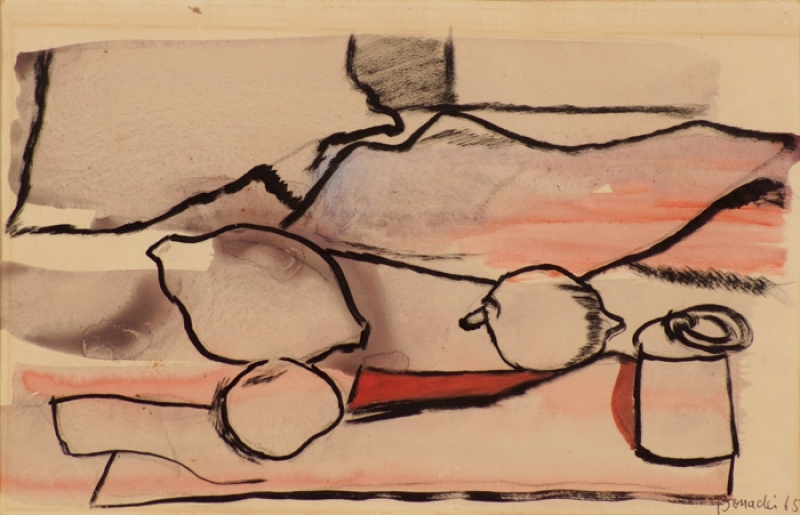 Aldo Bonadei - Natureza morta com jarro e frutas - 1972 - Óleo sobre tela - Assinado canto inferior esquerdo - 41 x 33 cm.