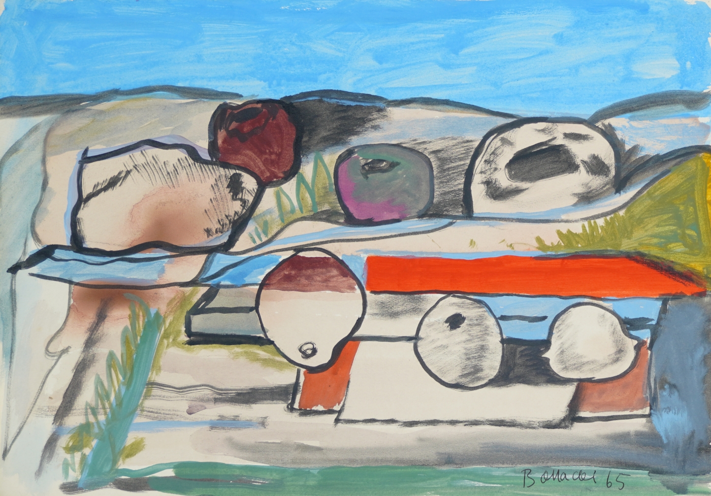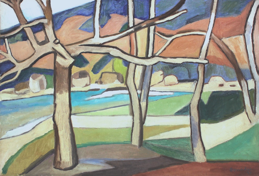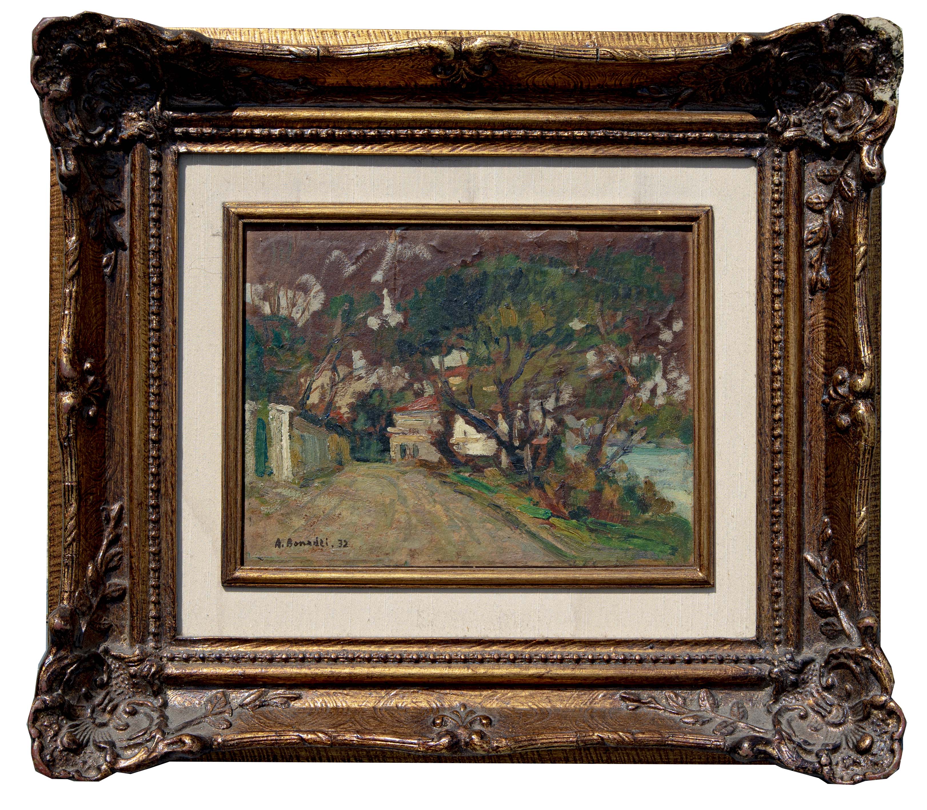 ALDO BONADEI, Litoral Paulista, OSM, ACID, 25 x 35cm (m.i). Datado 1954