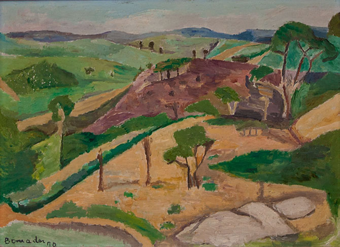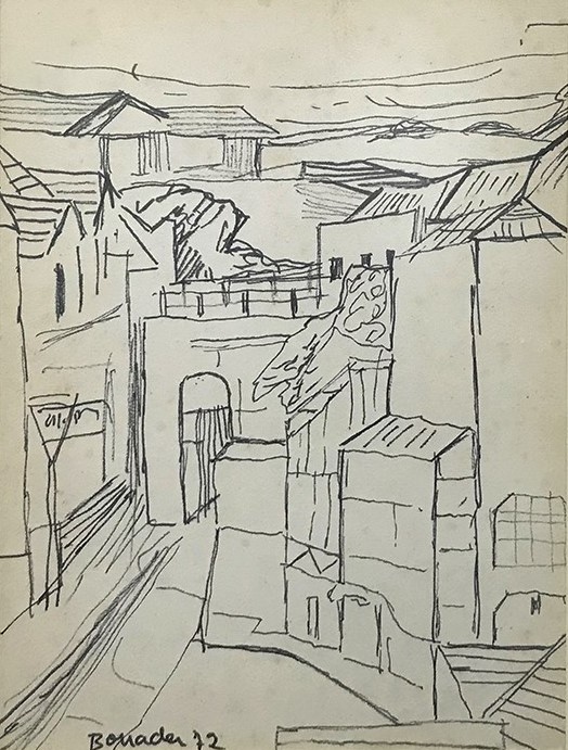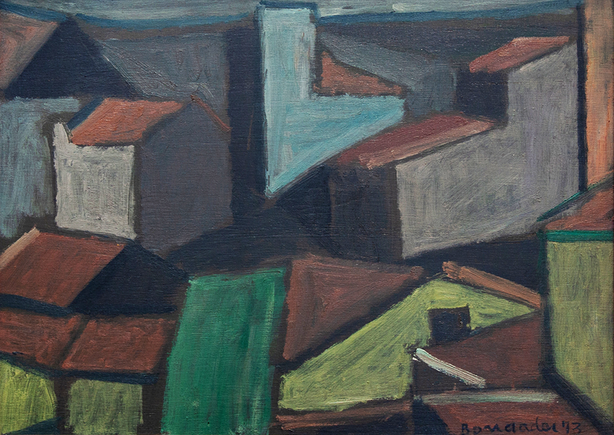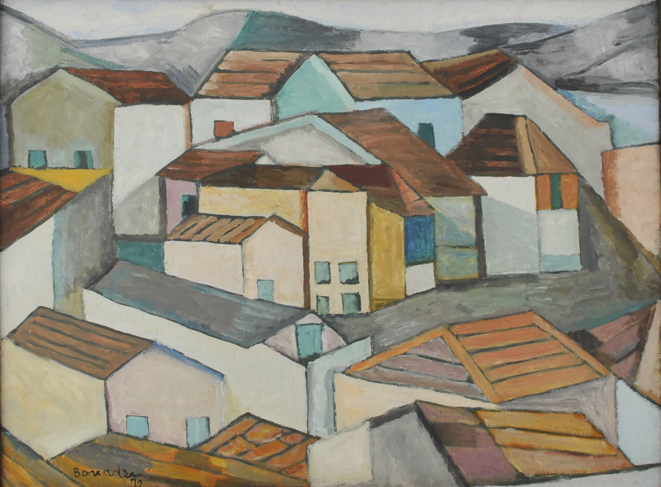 Aldo Bonadei - Casarios - 1973 - Óleo sobre tela - Assinado canto inferior esquerdo - 82 x 54 cm. Coleção Múcio Bandeira de Mello.