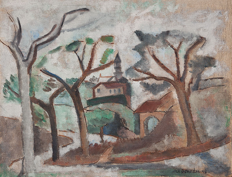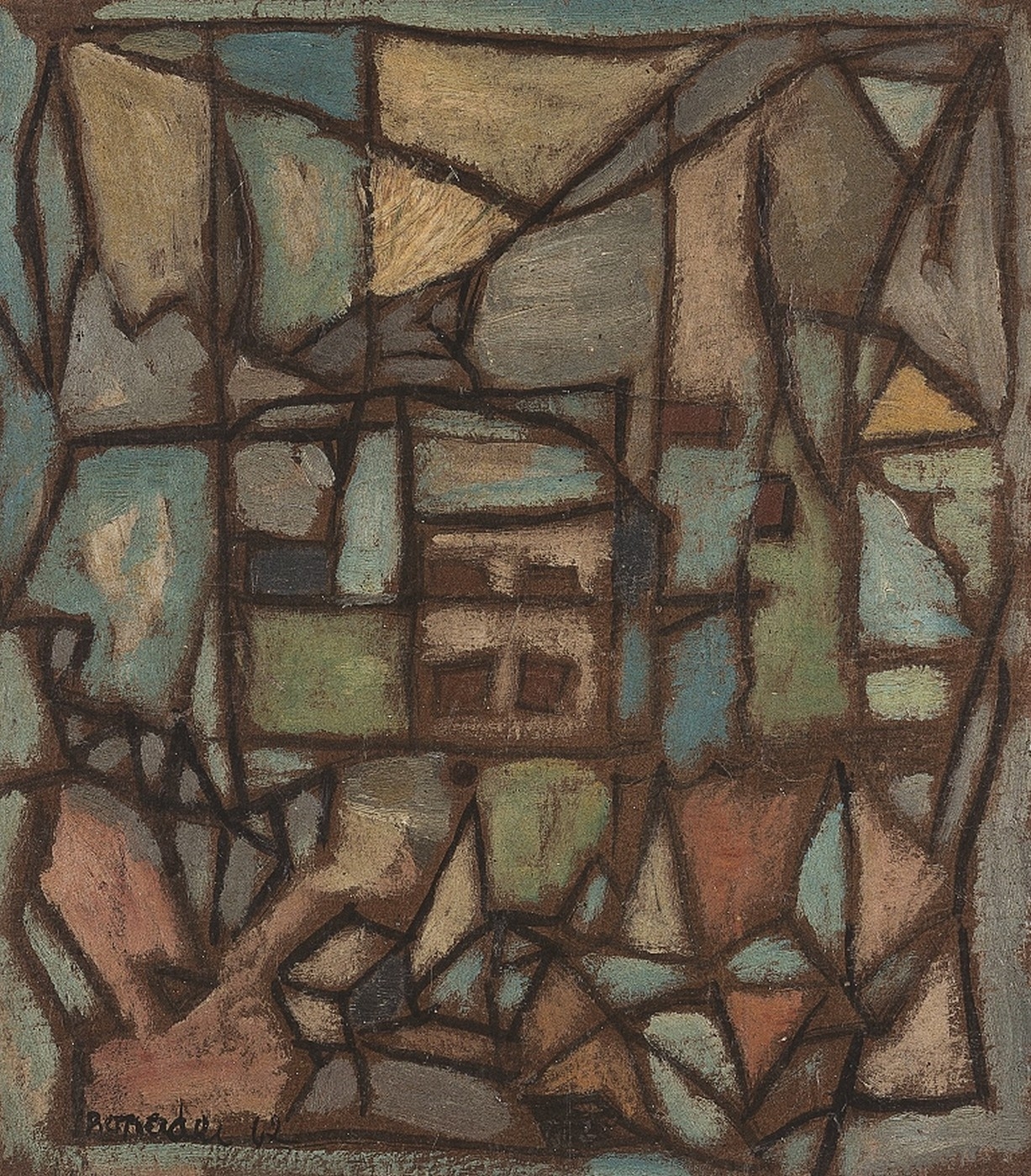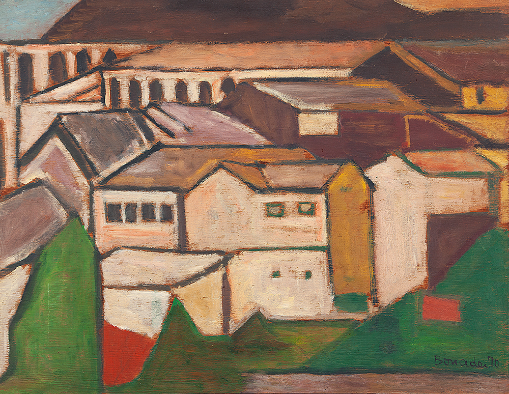 Aldo Bonadei - Casarios - 1973 - Óleo sobre tela - Assinado canto inferior esquerdo - 82 x 54 cm. Coleção Múcio Bandeira de Mello.