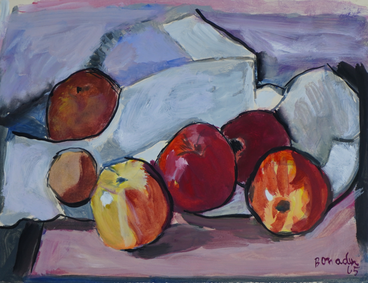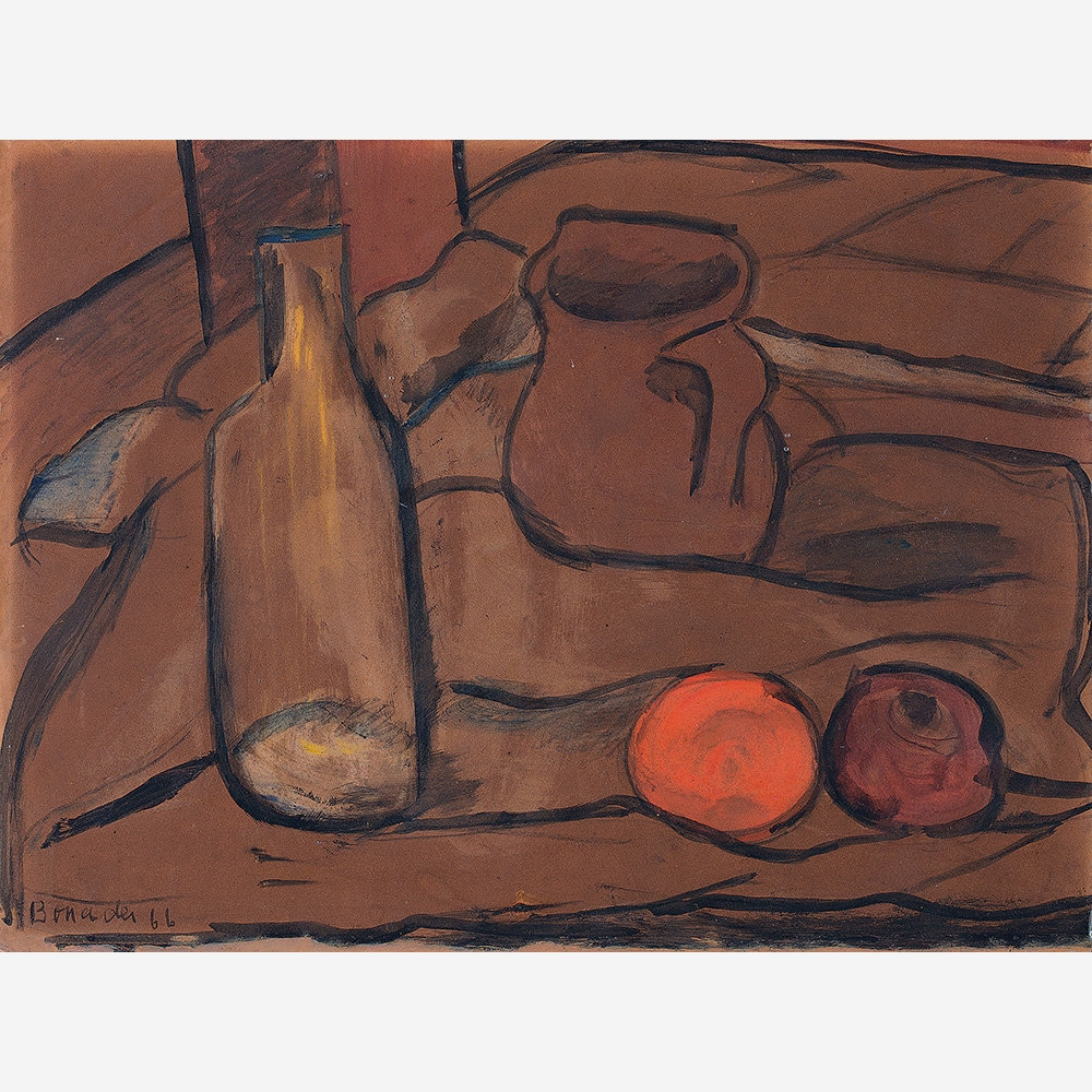 Aldo Bonadei - Natureza morta com jarro e frutas - 1972 - Óleo sobre tela - Assinado canto inferior esquerdo - 41 x 33 cm.