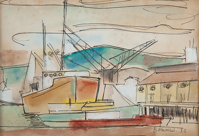 ALDO BONADEI, Litoral Paulista, OSM, ACID, 25 x 35cm (m.i). Datado 1954