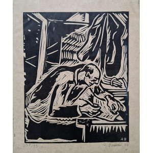 Aldo Bonadei xilografia 25 x 20cm “Sem Titulo” ass. CID datada 1945 tiragem 39/53