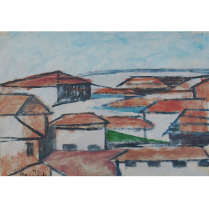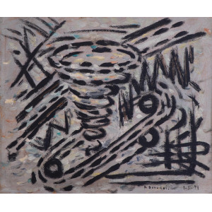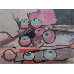 Aldo Bonadei tecmica mista sobre cartão 27 x 37cm “Sem Titulo” ass. CID datada 1965 apresenta fungos
