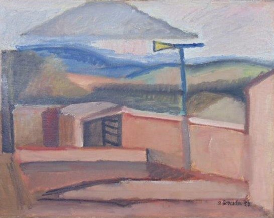 ALDO BONADEI, Litoral Paulista, OSM, ACID, 25 x 35cm (m.i). Datado 1954