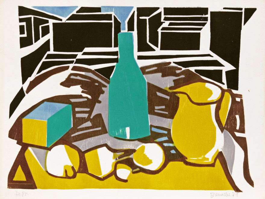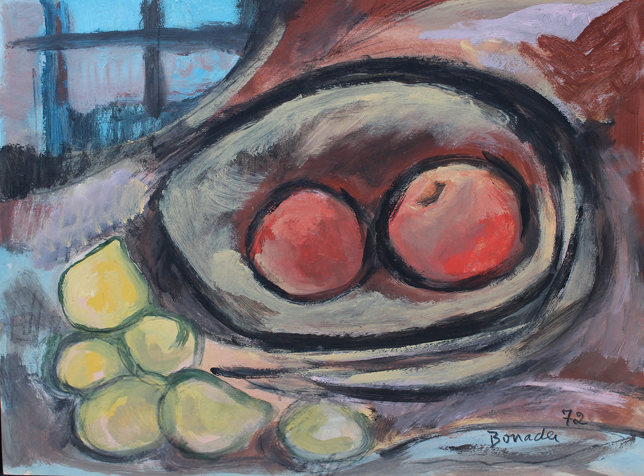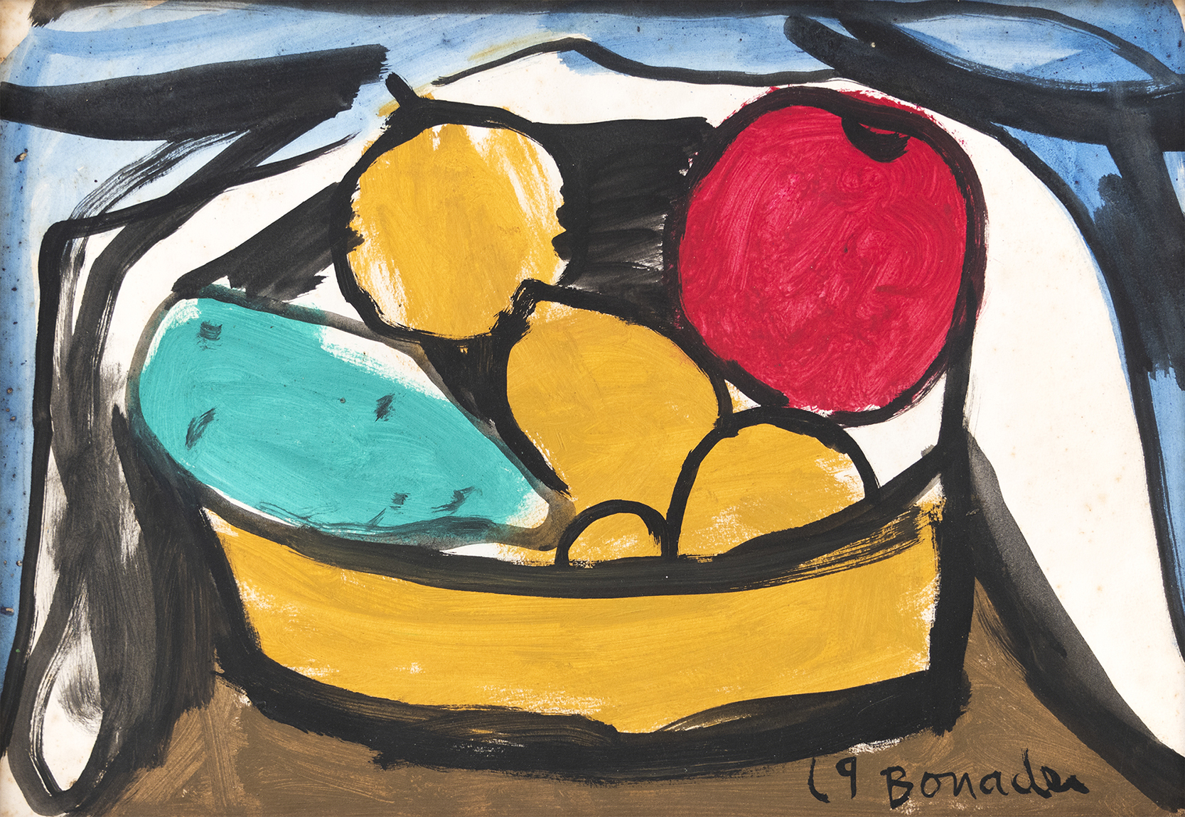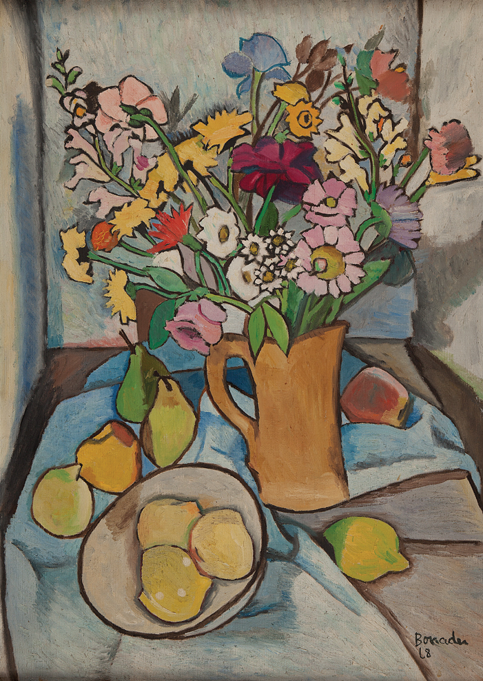 Aldo Bonadei - Natureza morta com jarro e frutas - 1972 - Óleo sobre tela - Assinado canto inferior esquerdo - 41 x 33 cm.