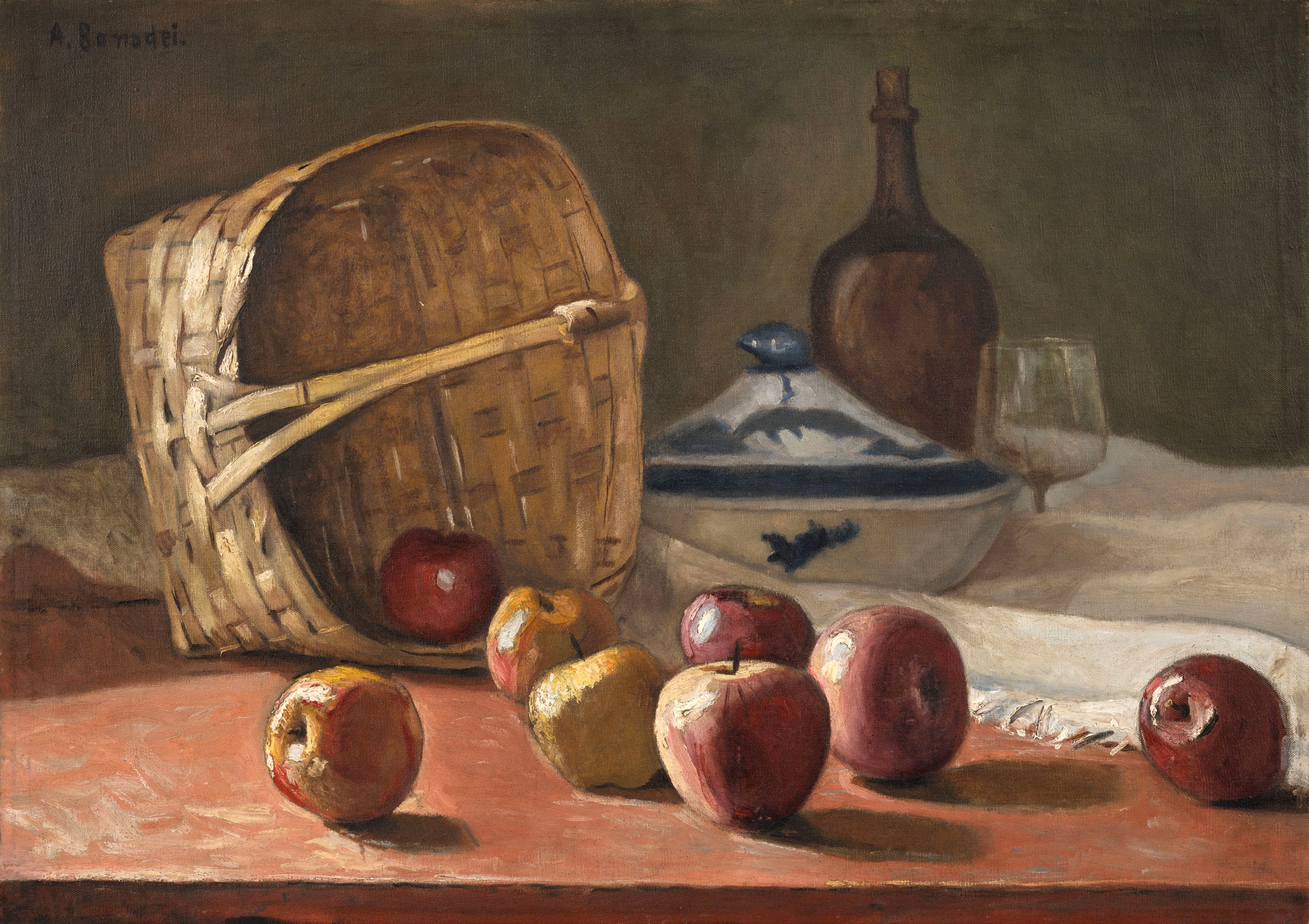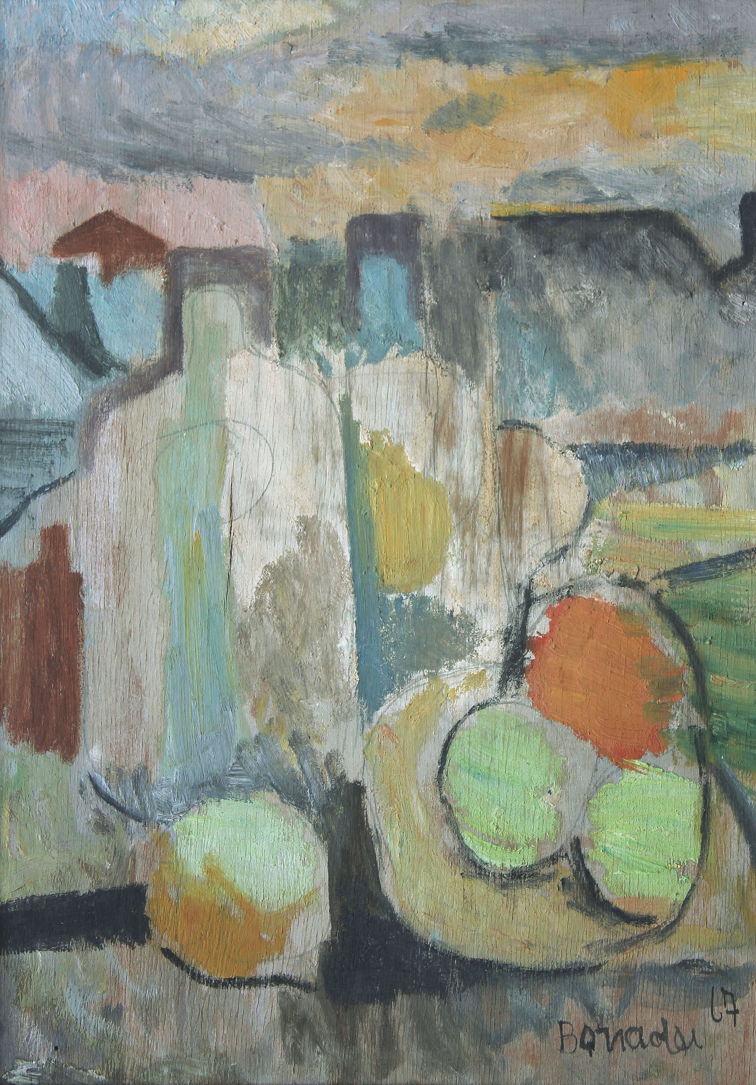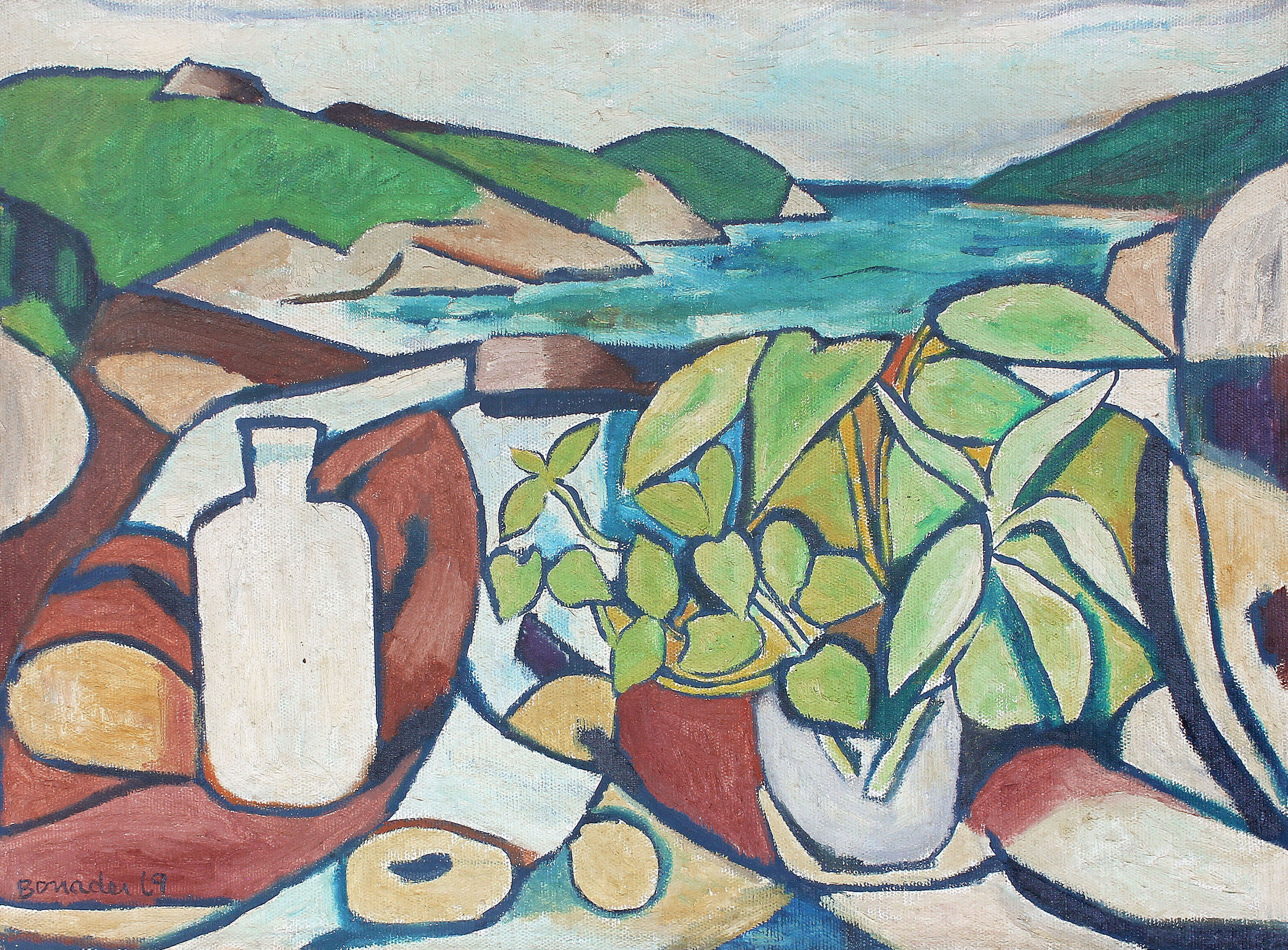 Aldo Bonadei - Natureza morta com jarro e frutas - 1972 - Óleo sobre tela - Assinado canto inferior esquerdo - 41 x 33 cm.