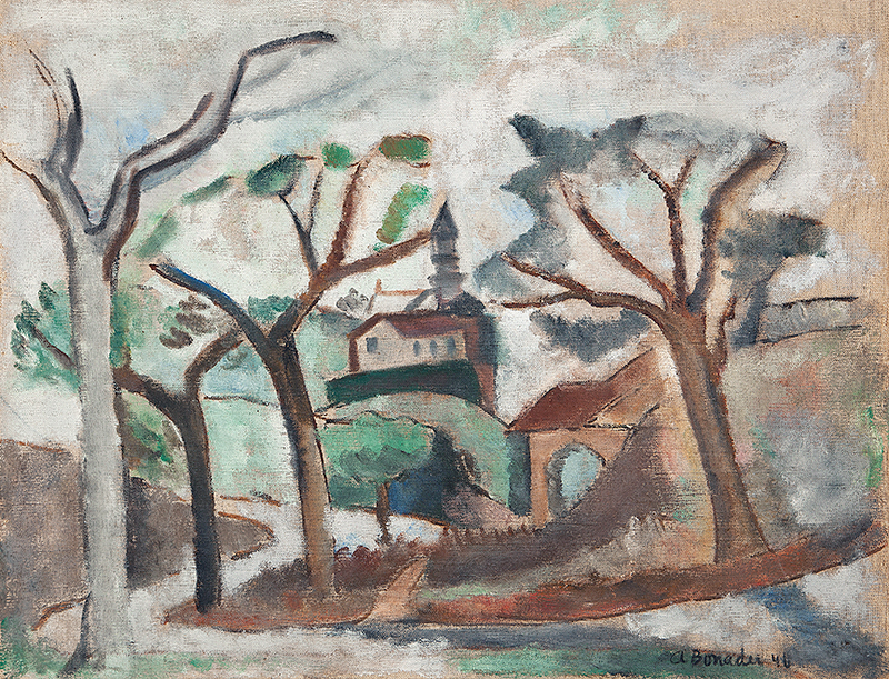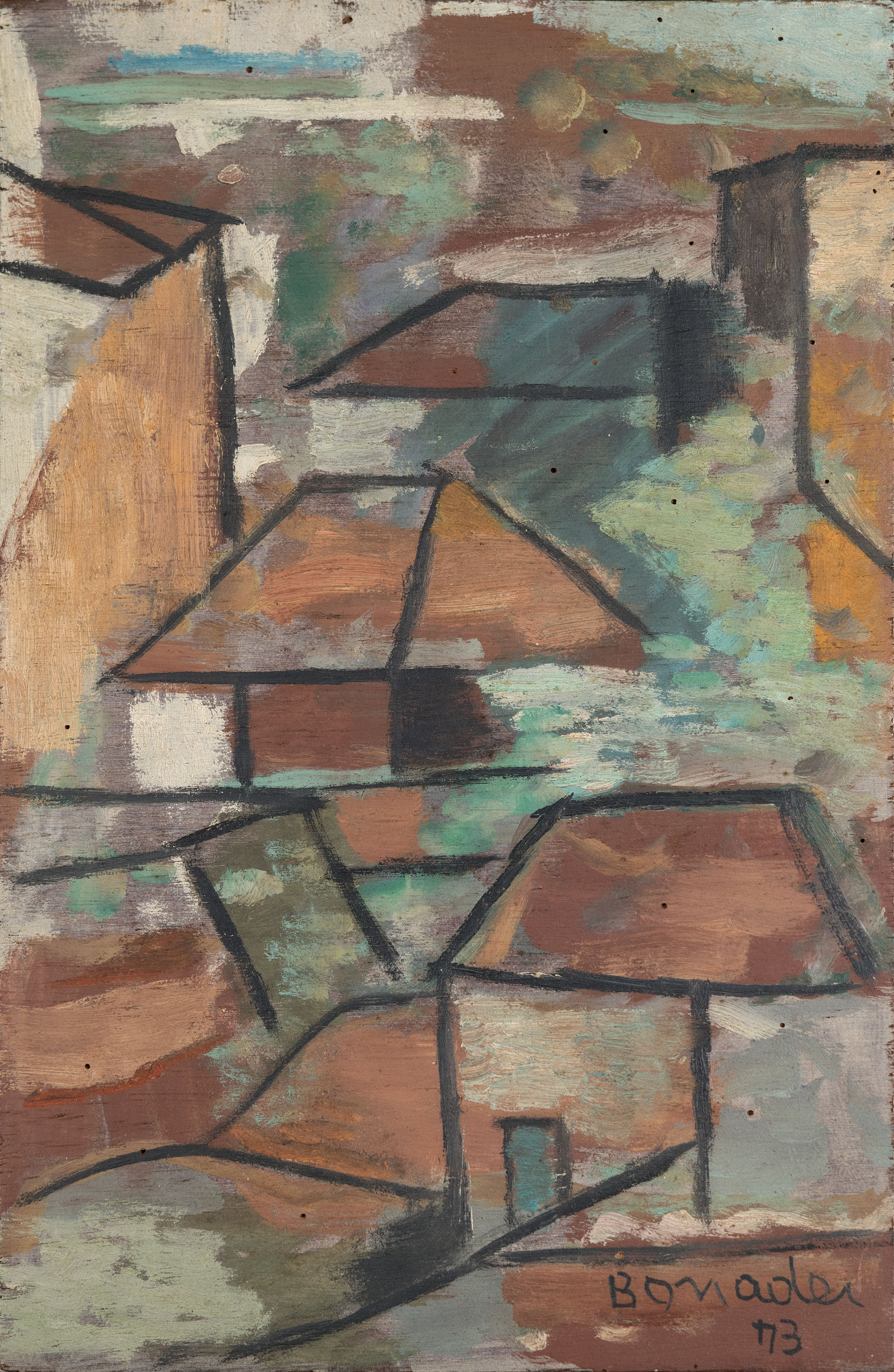 Aldo Bonadei - Casarios - 1973 - Óleo sobre tela - Assinado canto inferior esquerdo - 82 x 54 cm. Coleção Múcio Bandeira de Mello.