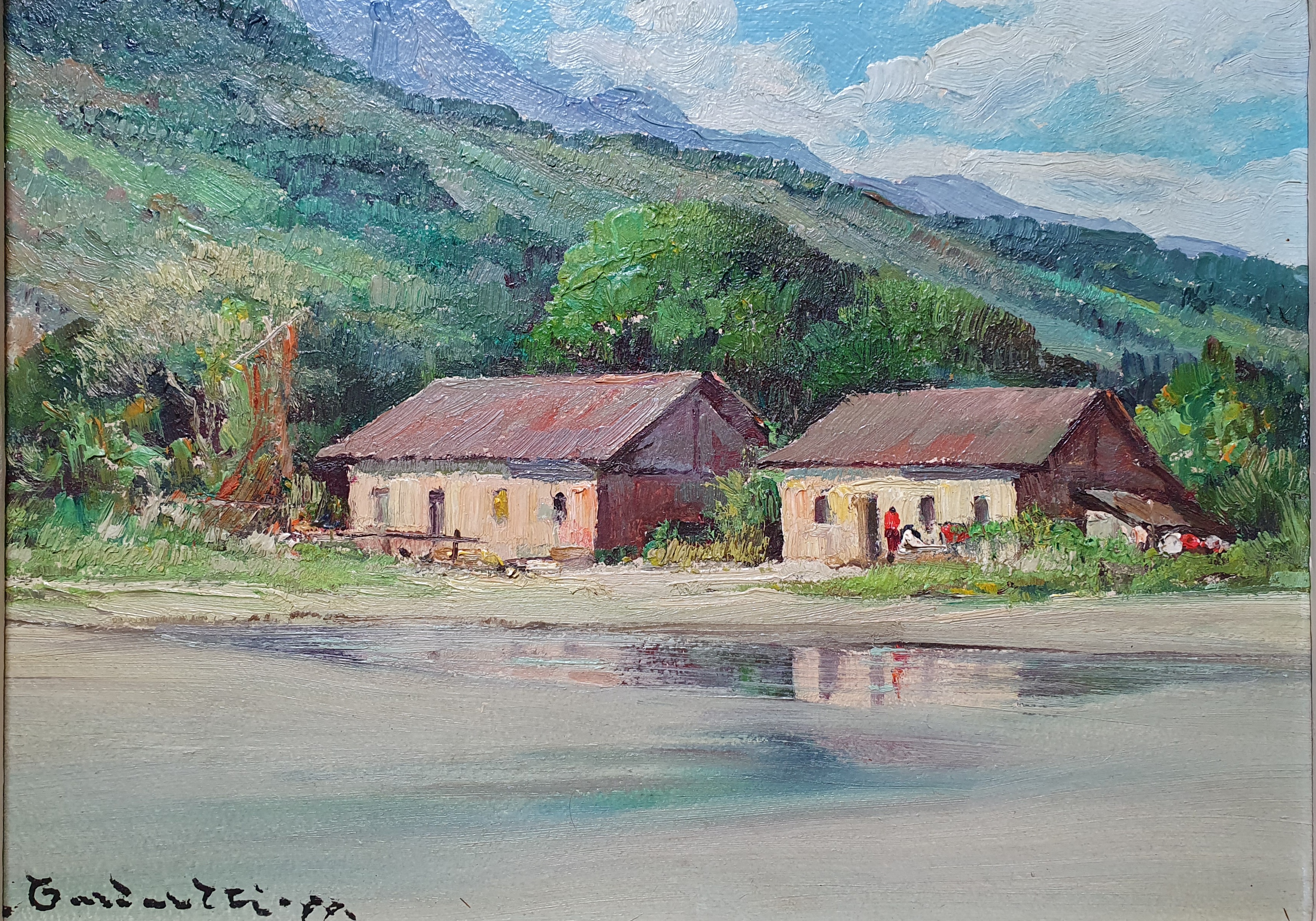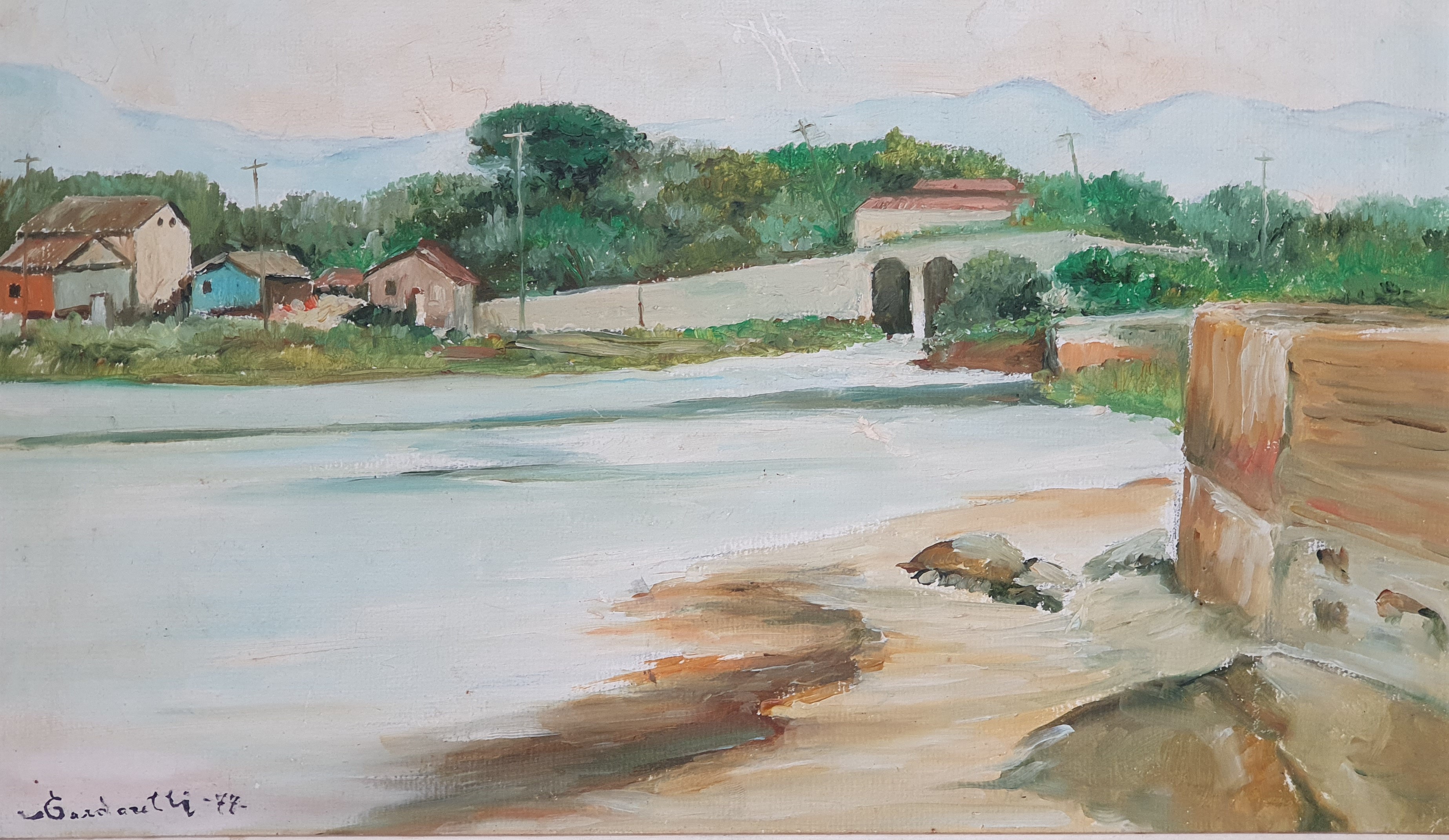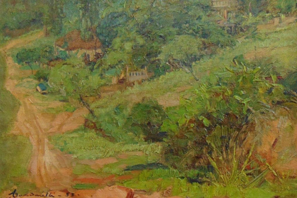 Aldo Cardarelli (Campinas SP 1915 - idem 1986). Pintor, professor. Inicia seus estudos ainda criança com o pintor veneziano Luís Franco, em Campinas. Mais tarde, frequenta o ateliê de Bernardino de Souza Pereira e de Orlando Tarquínio. Torna-se membro da Academia Brasileira de Belas Artes e da  Academia Paulista de Belas-Artes. Leciona desenho e pintura na Faculdade de Arquitetura Mackenzie e na Pontifícia Universidade Católica de Campinas (PUCCAMP), São Paulo.  Entre 1940 e 1984, participa de várias edições do Salão Paulista de Belas-Artes.