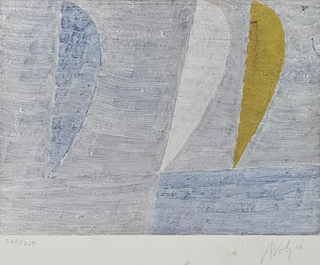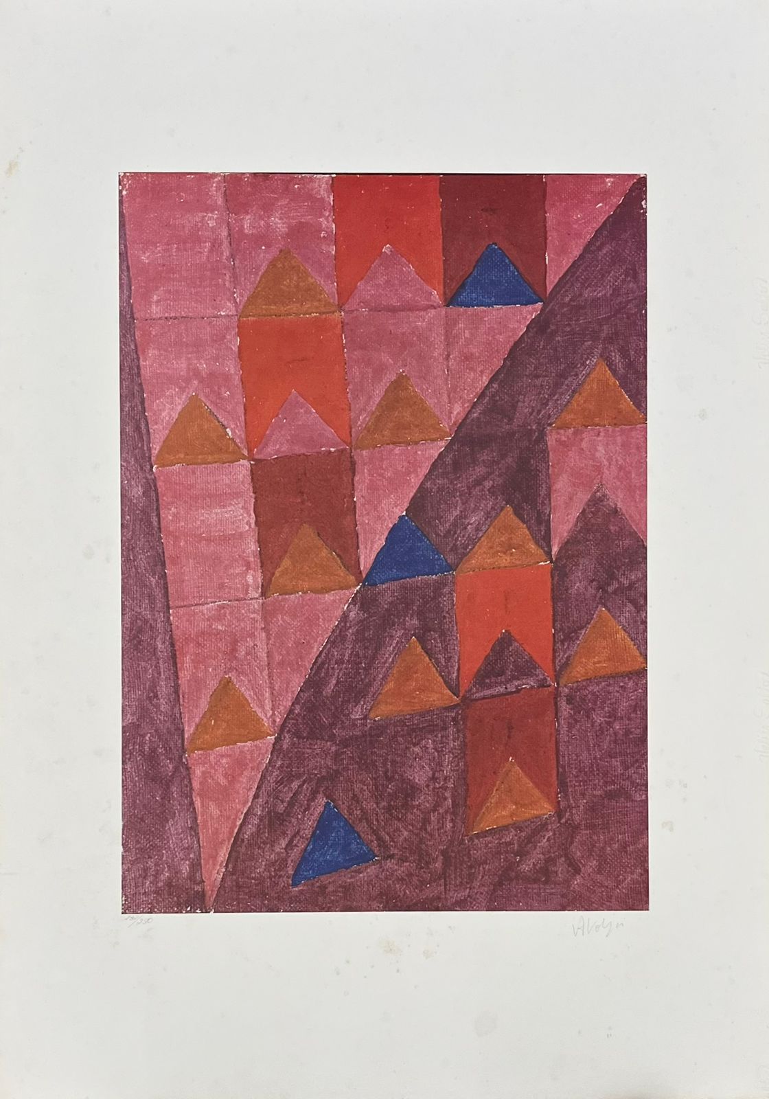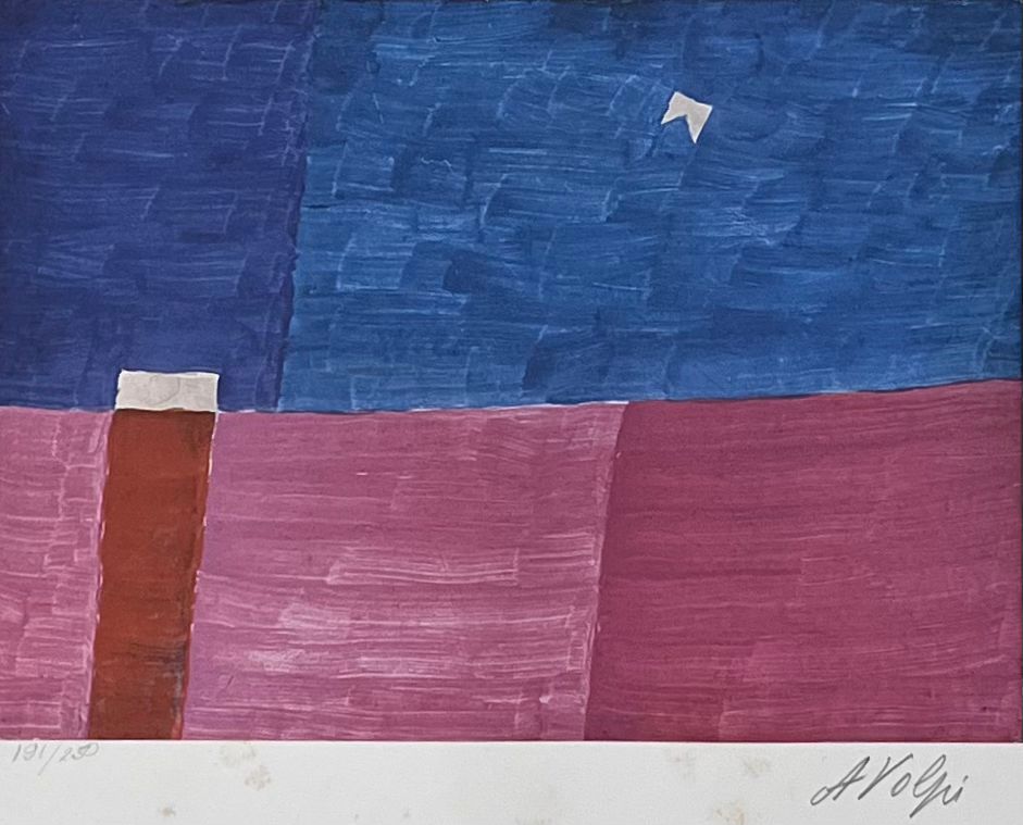 Alfredo Volpi gravura 64 x 46 cm "Sem titulo " ass. CID t. 70/100. Apresenta fungos