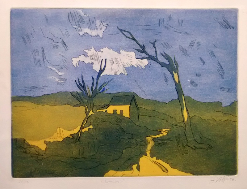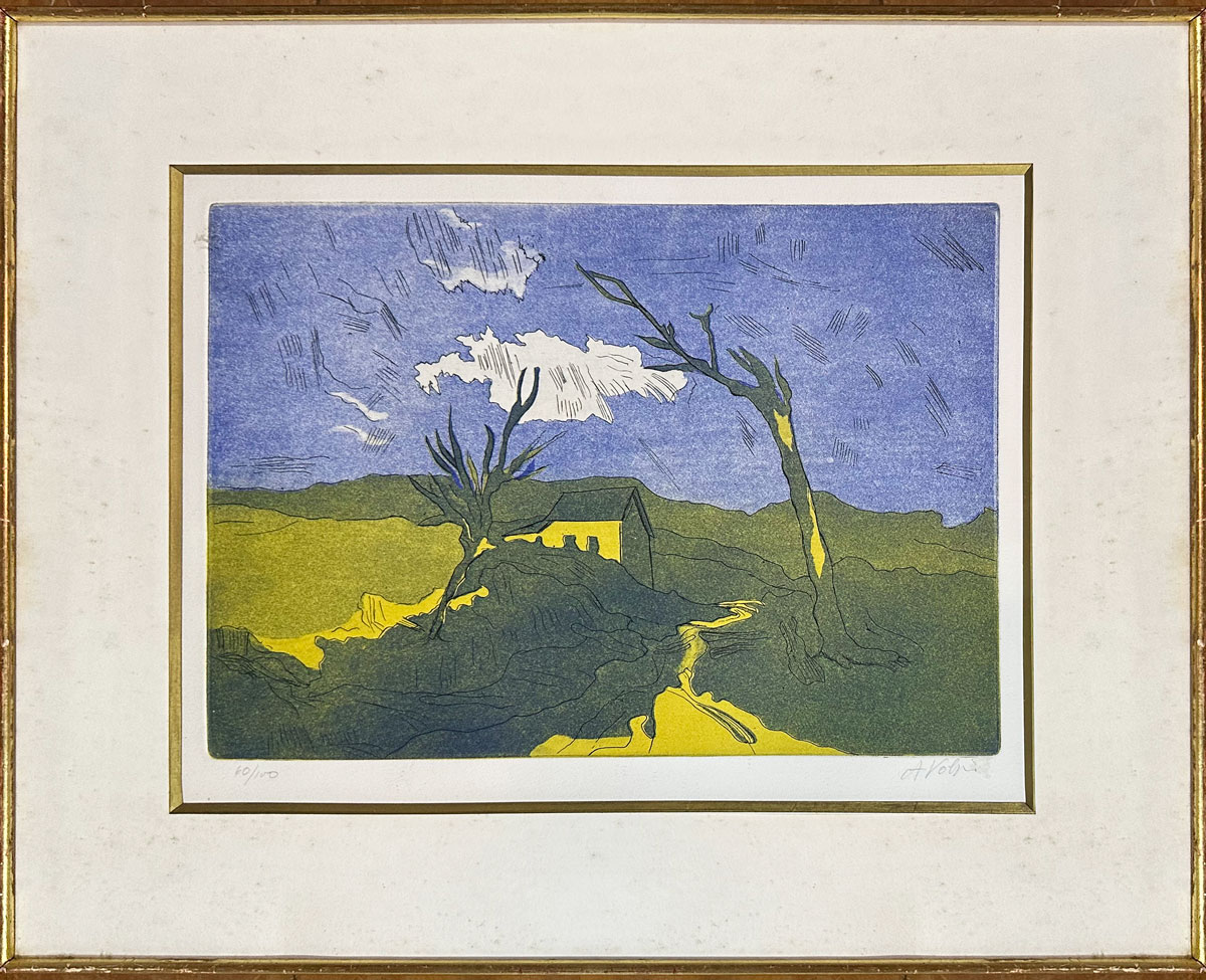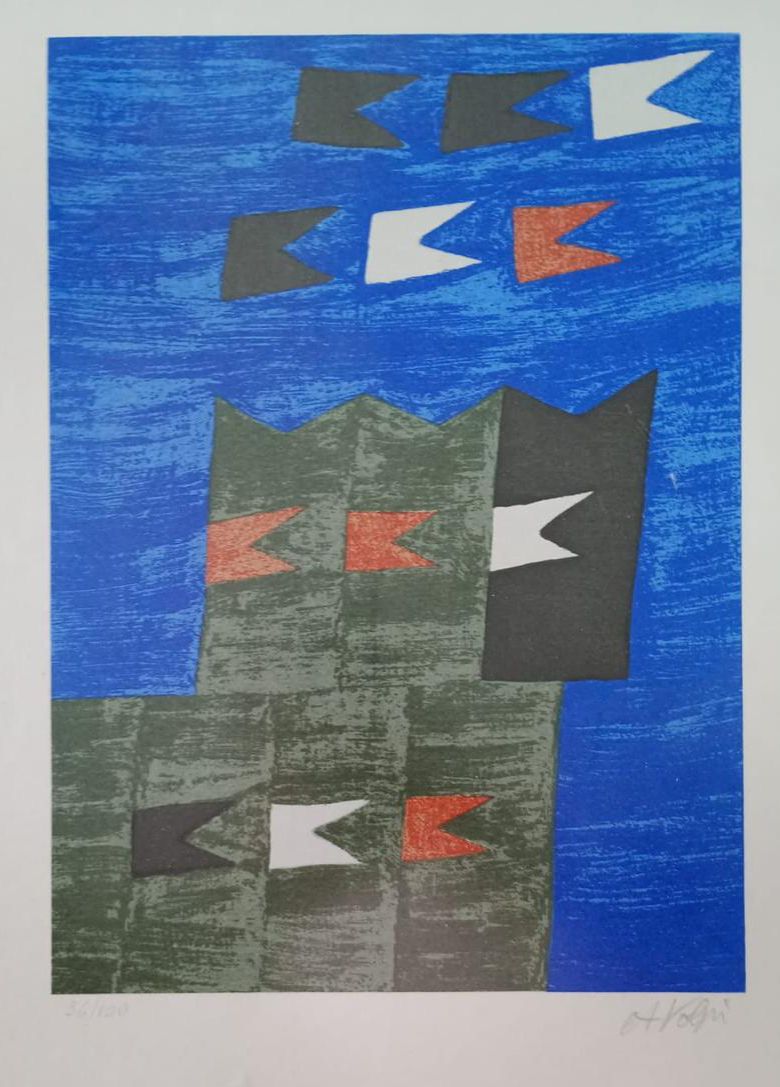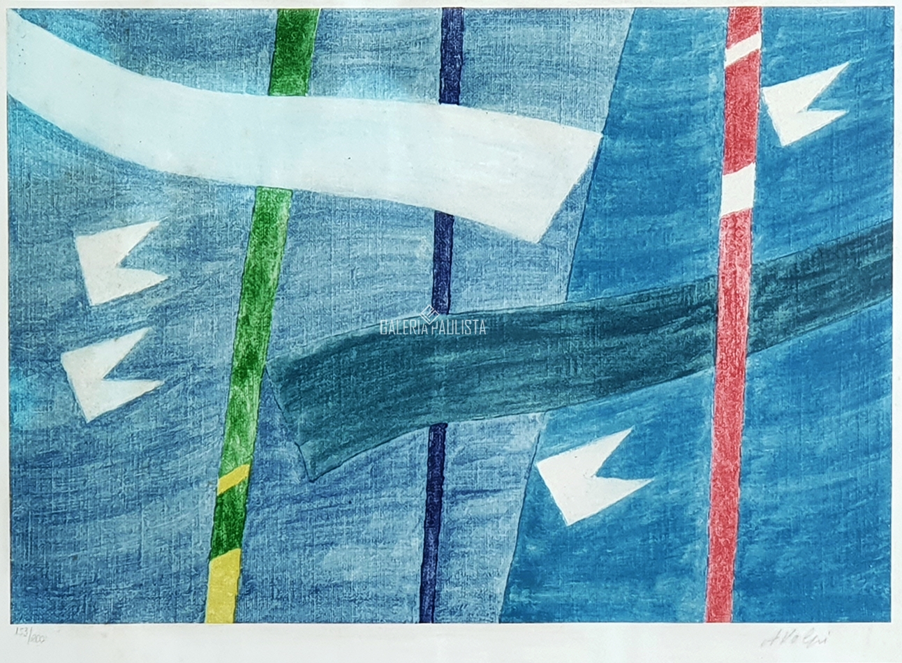 Alfredo Volpi - Sem título - Gravura - P.A. - Assinado canto inferior direito - 44 x 74 cm.